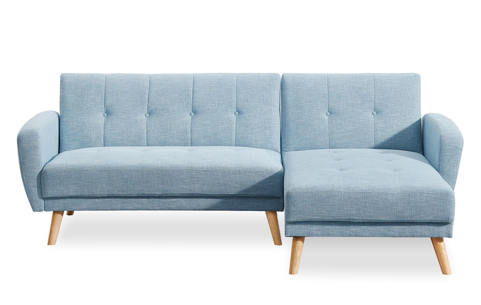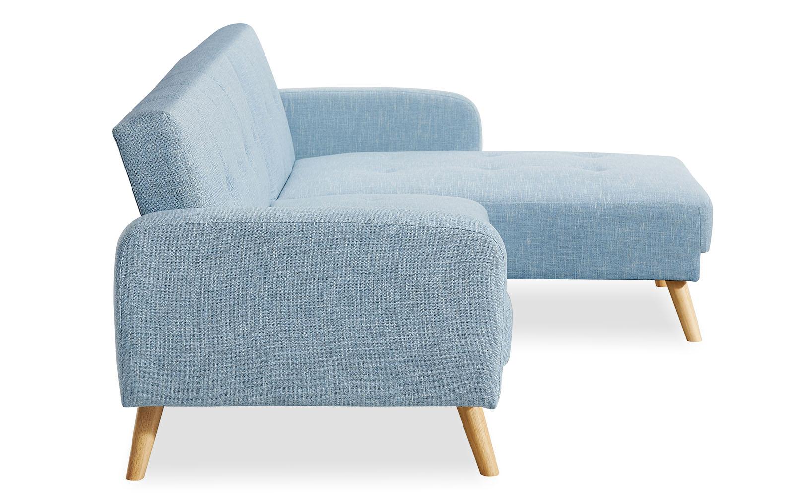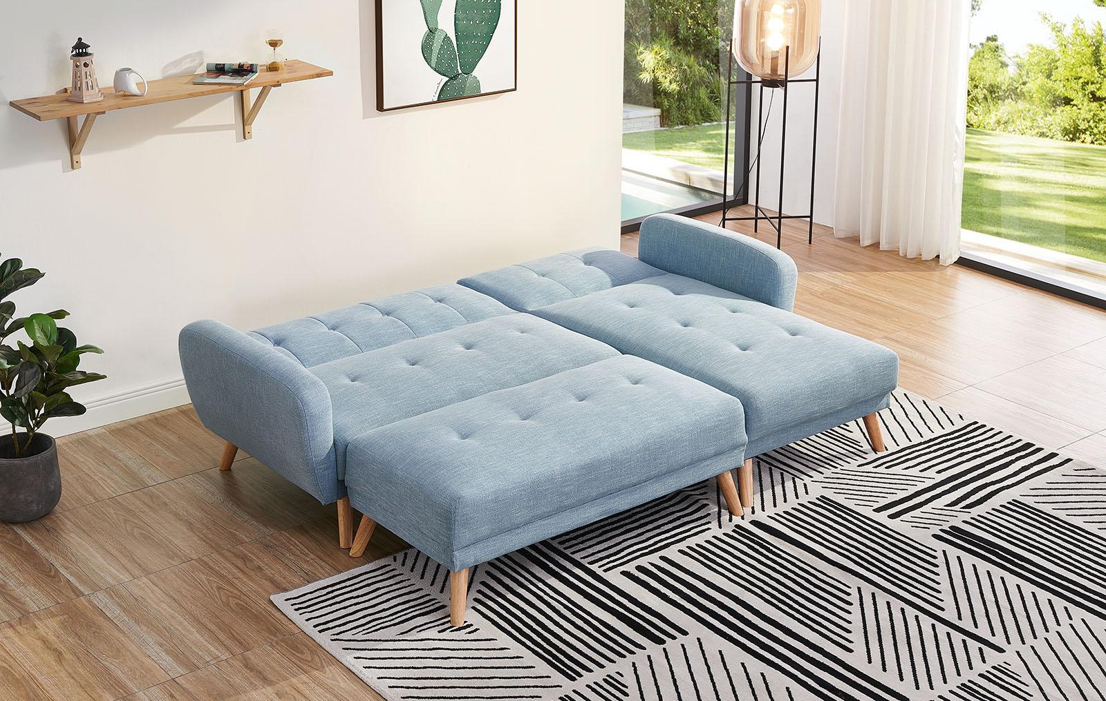 Угловой диван-кровать Christy (Кристи) с обивкой рогожки голубого цвета и деревянными ножками выглядит очень уютно и прекрасно подойдет для любого стиля интерьера. Это удобная и многофункциональная мебель, которая будет уместна в гостиной, столовой, кабинете, спальне.