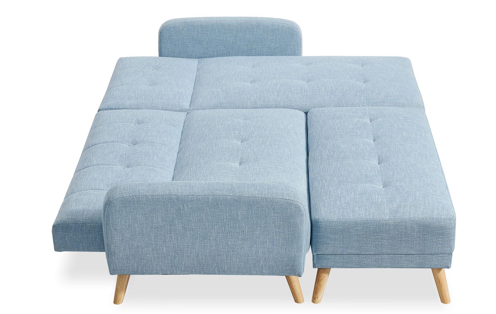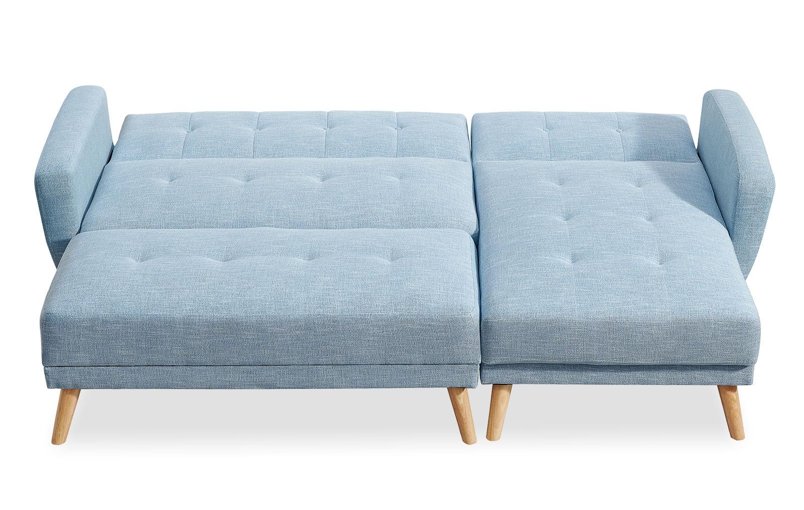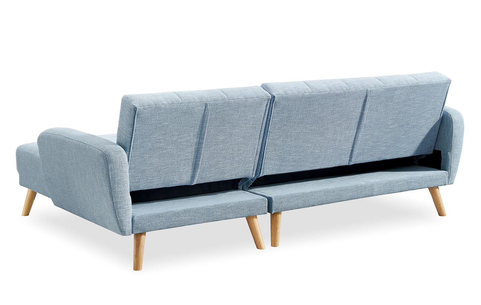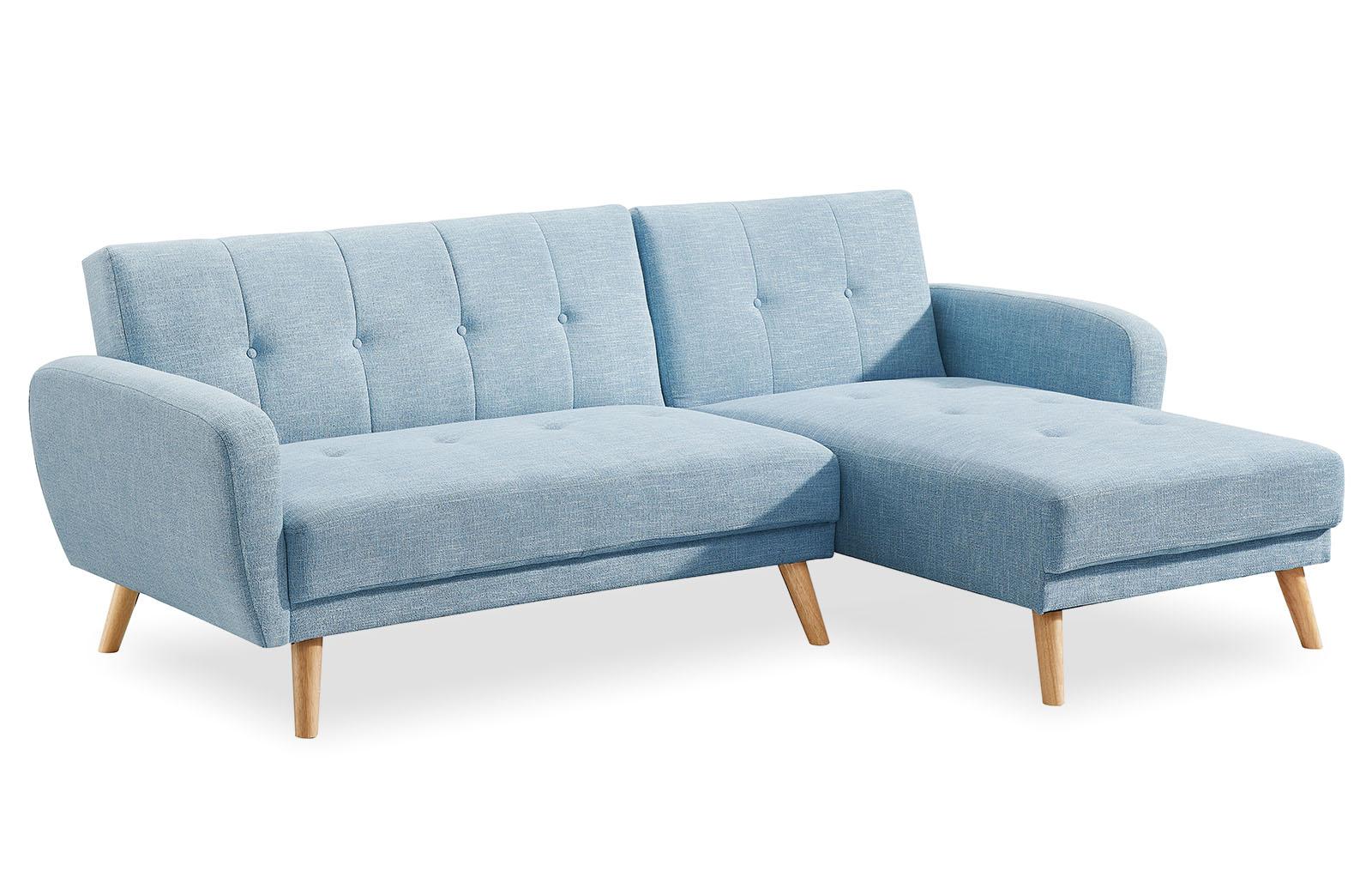 Угловой диван-кровать Christy (Кристи) с обивкой рогожки голубого цвета и деревянными ножками выглядит очень уютно и прекрасно подойдет для любого стиля интерьера. Это удобная и многофункциональная мебель, которая будет уместна в гостиной, столовой, кабинете, спальне.