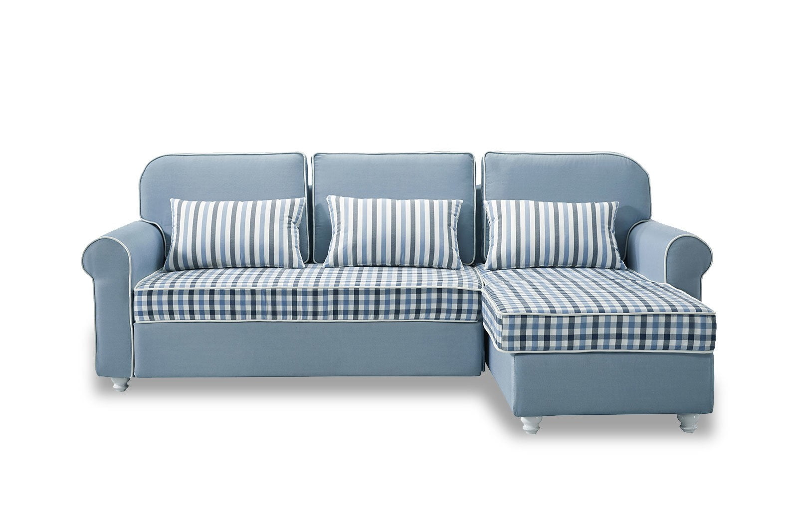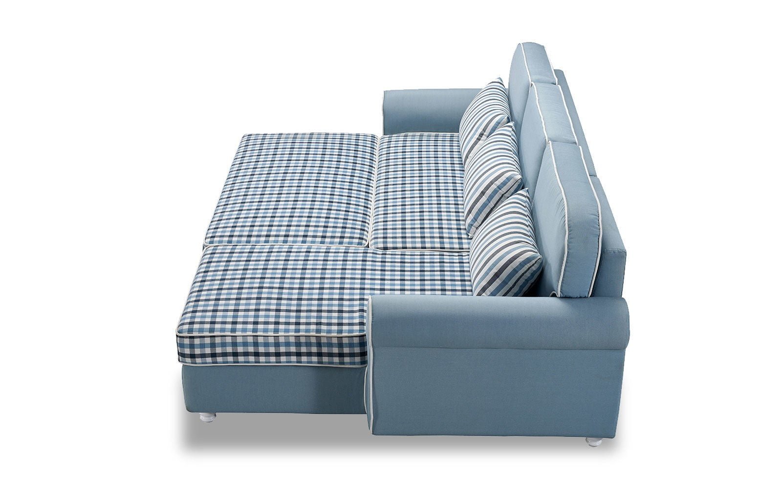 Угловой диван-кровать голубого цвета - оптимальное решение для функциональных интерьеров, выдержанных в пастельных тонах.