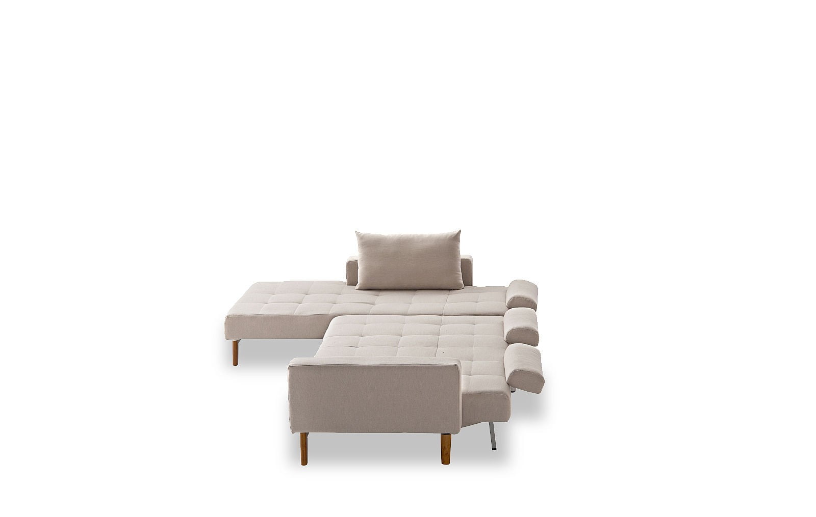 Угловой диван Summer в современном стиле. Обивка из ткани бежевого цвета, деревянные ножки. В комплекте три подушки.