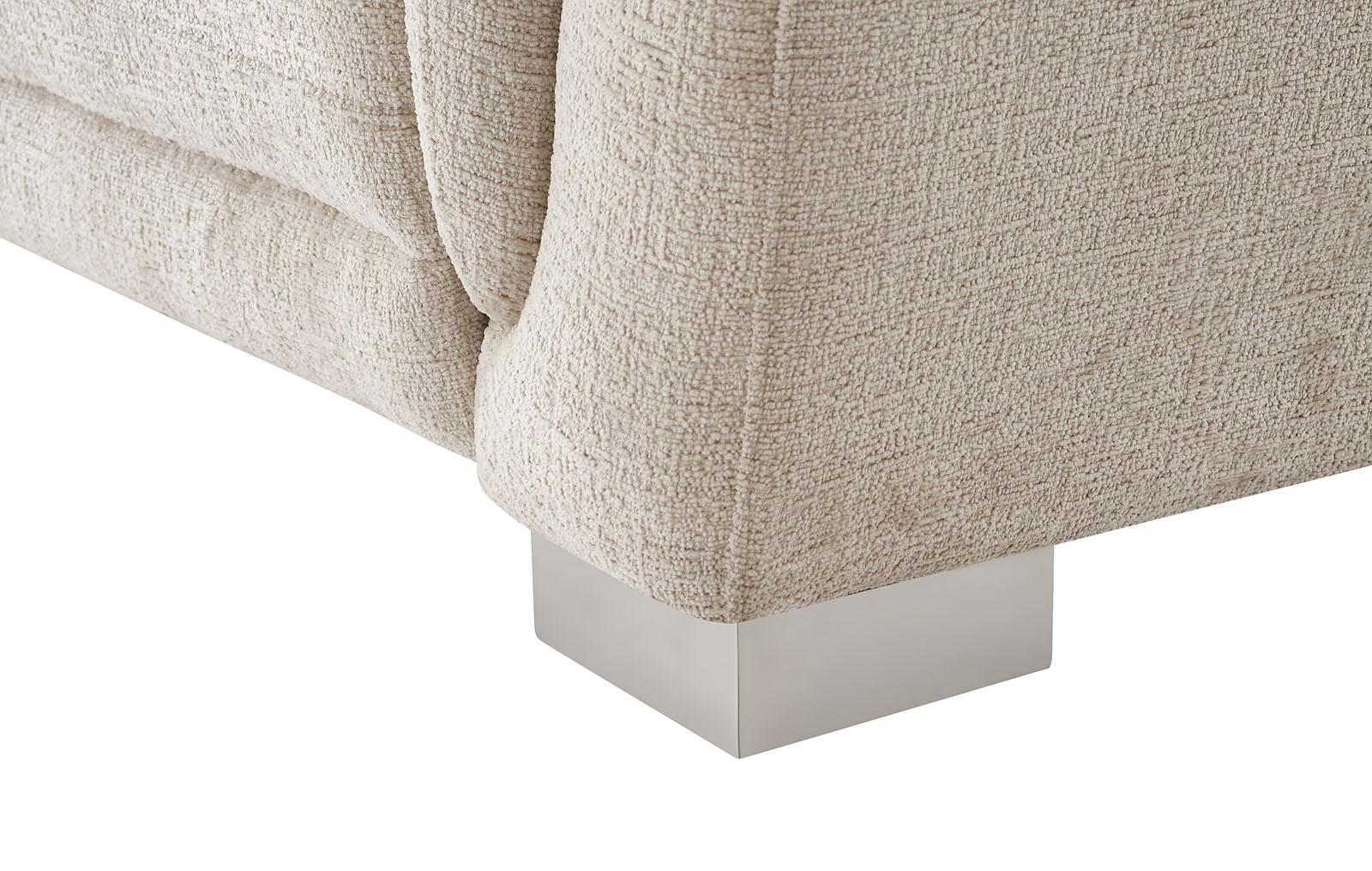 Обивка выполнена из шенилла светлого нейтрального оттенка, который впишется в любую цветовую схему современного интерьера.