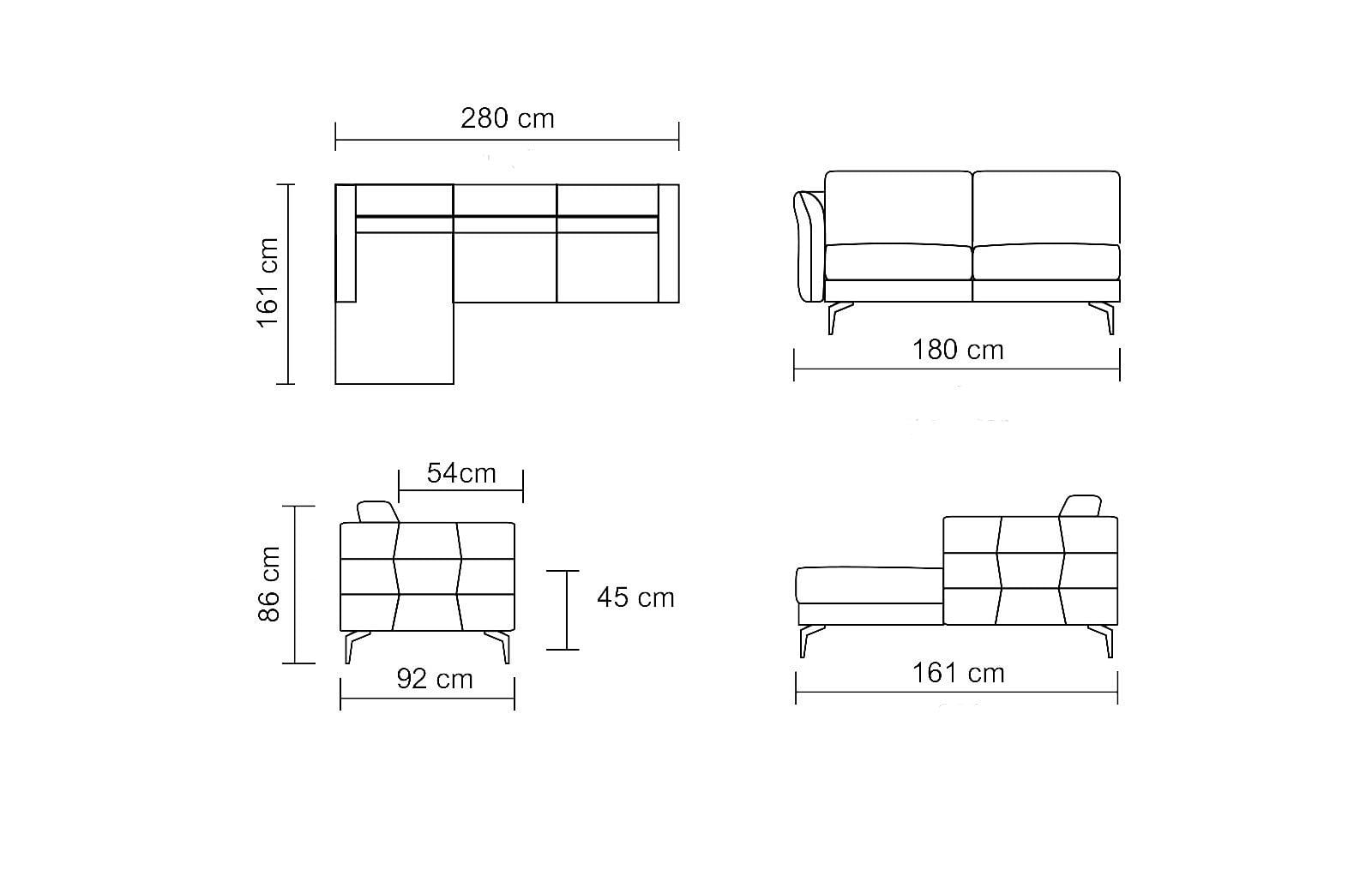 Глубина основной части: 92 см / Глубина угловой части: 161 см