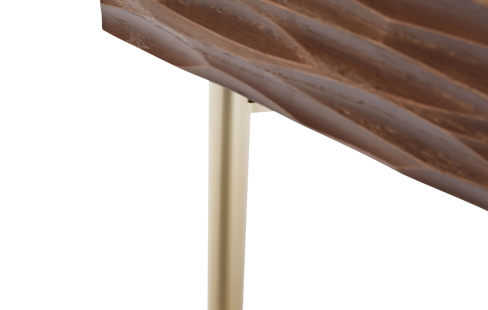 Текстура дерева подчеркивает изысканность интерьера, а золотистый металл добавляет нотку роскоши в обстановку.