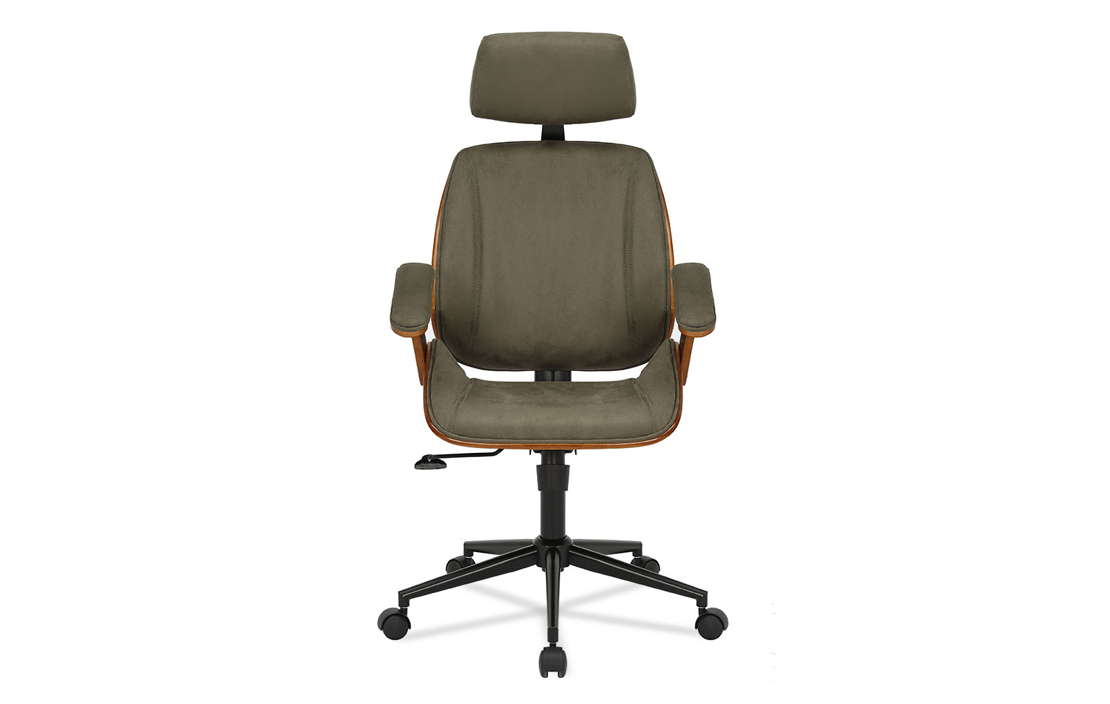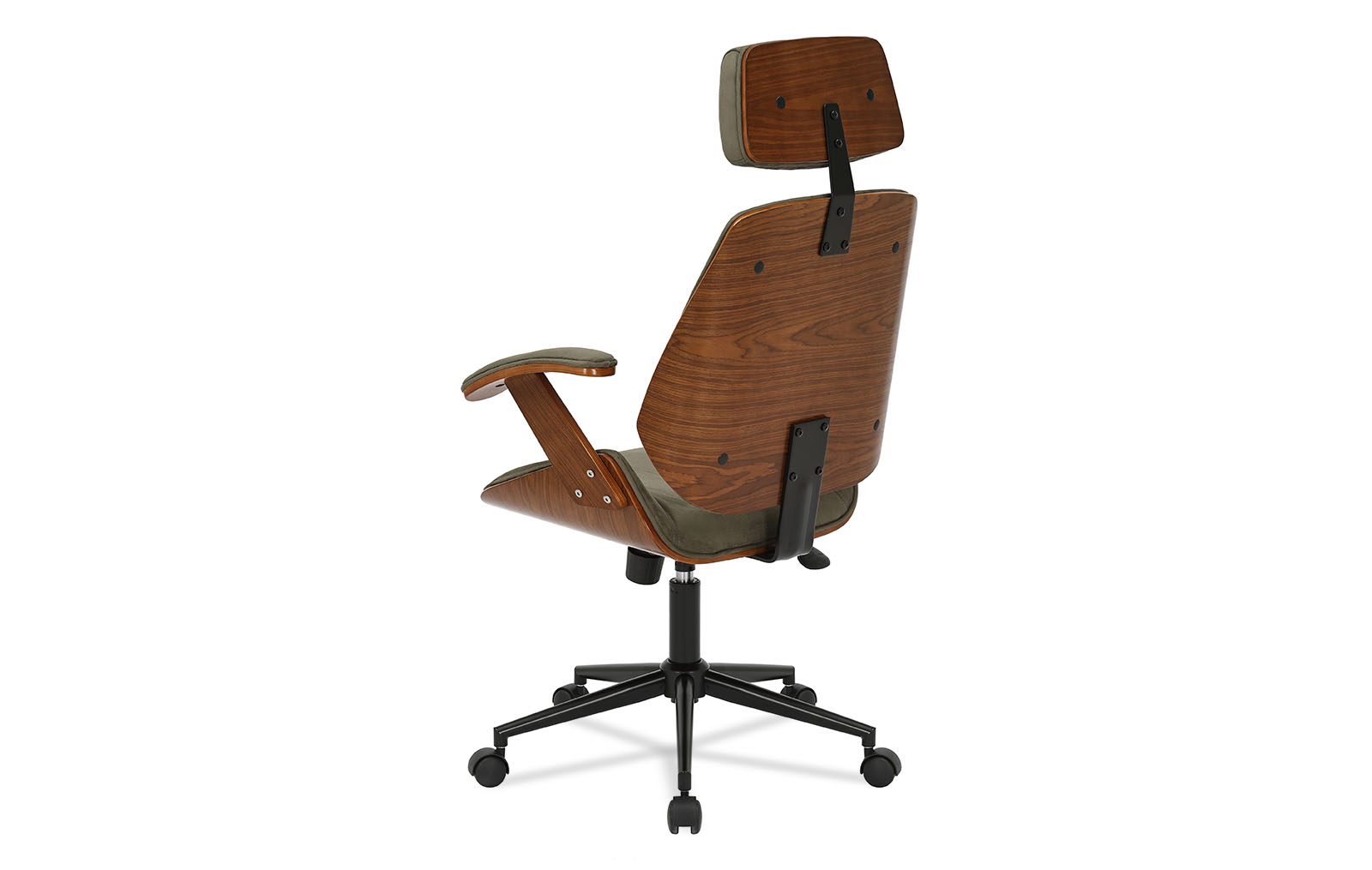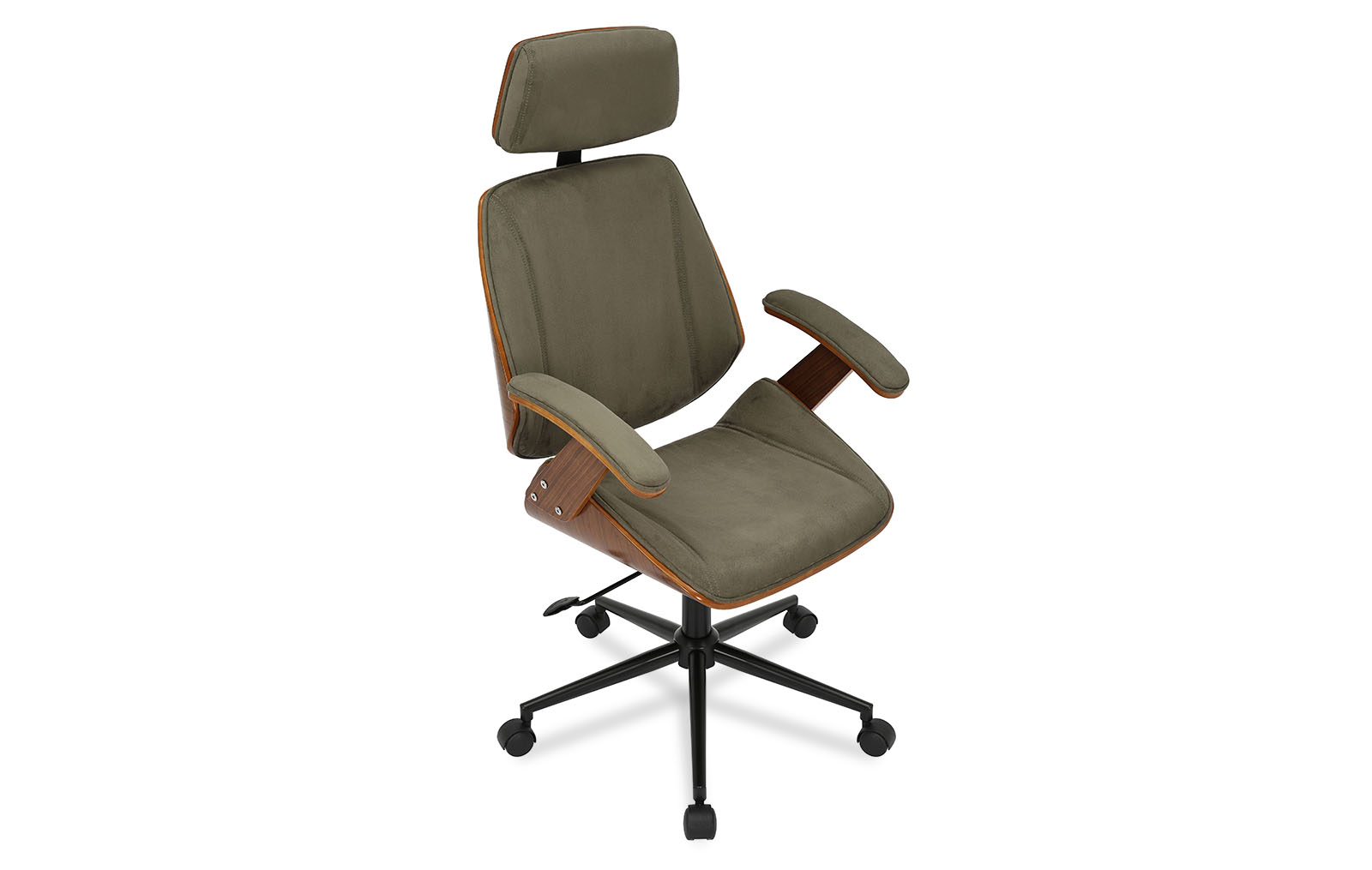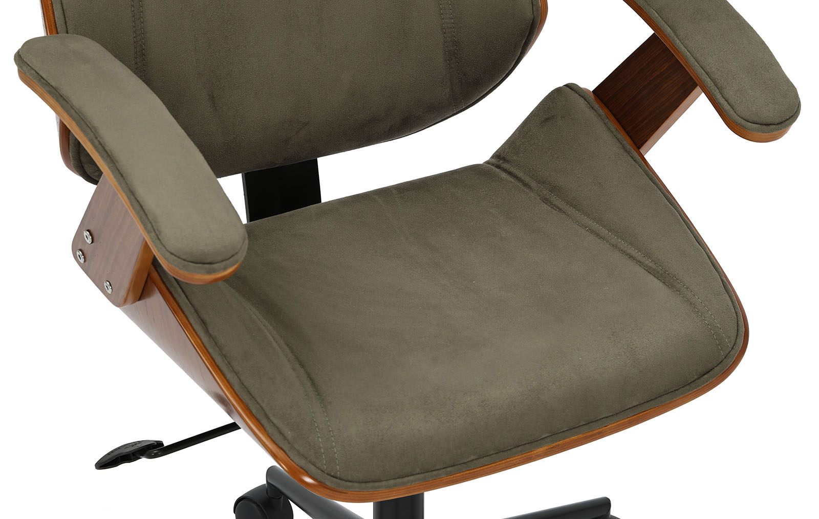 Обивка из эконубука оливково-зеленого оттенка, сиденье и спинка декорированы шпоном ореха.