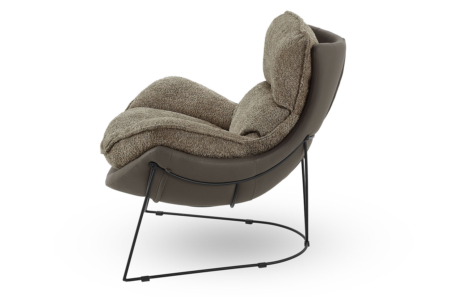 Оригинальная ножка кресла выполнена в виде металлического каркаса из прутьев, что придает ему современный и легкий вид, визуально освобождая пространство.