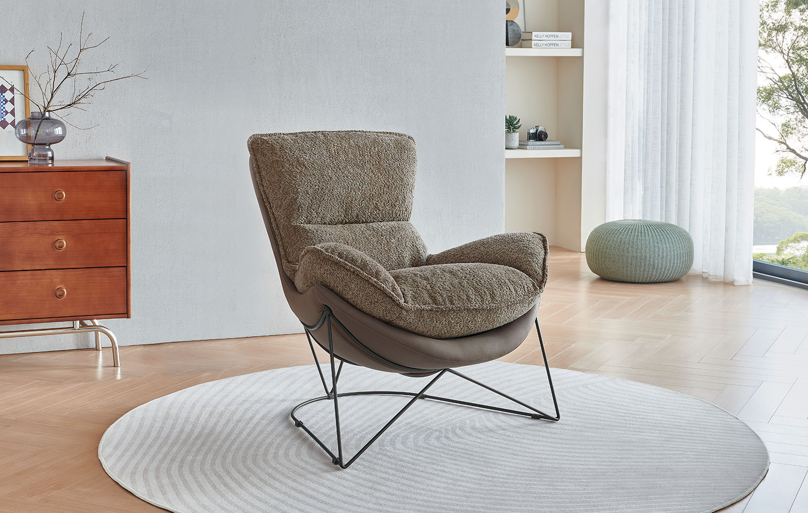 Кресло впишется в такие интерьеры, как современный, скандинавский, фьюжн и лофт.