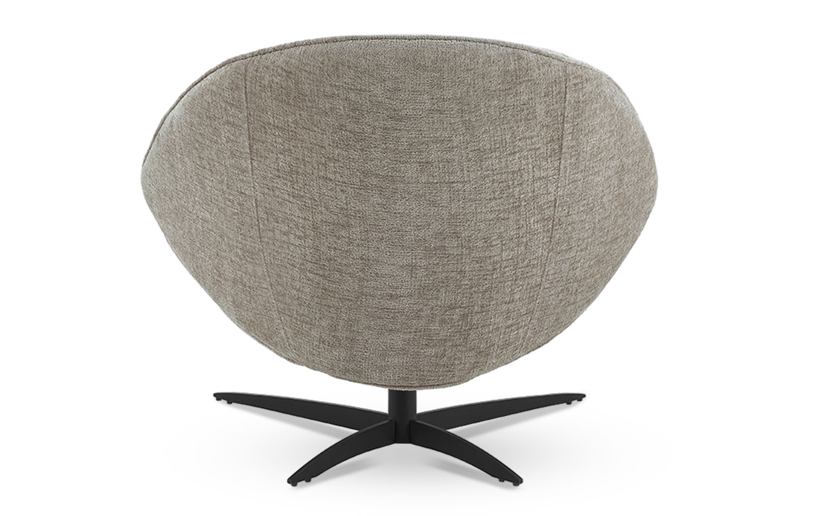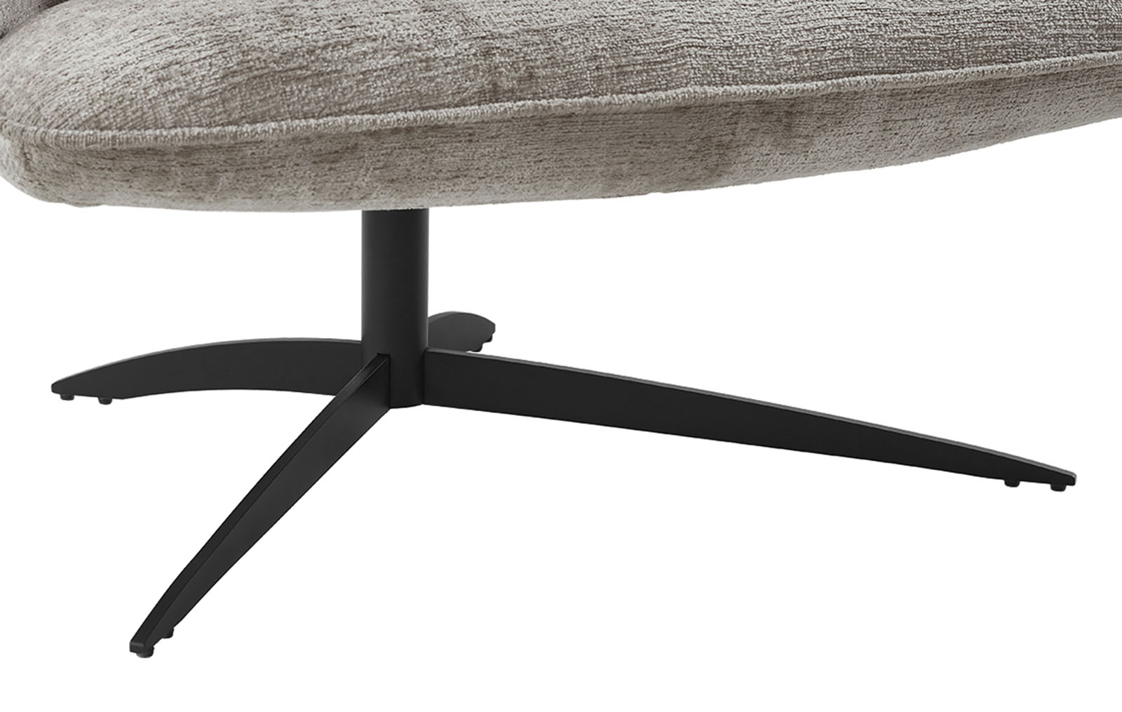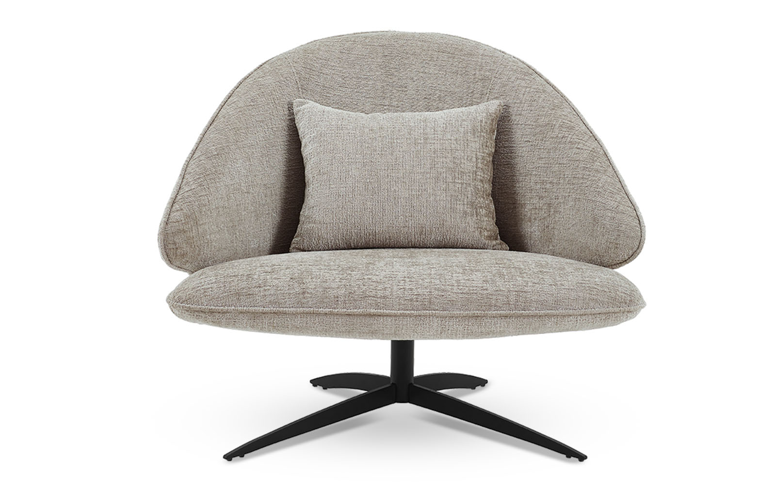 Универсальный серо-бежевый оттенок обивки впишется в различные цветовые схемы гостиных и лаунж зон. Ножка на крестообразном основании - из черного металла.
