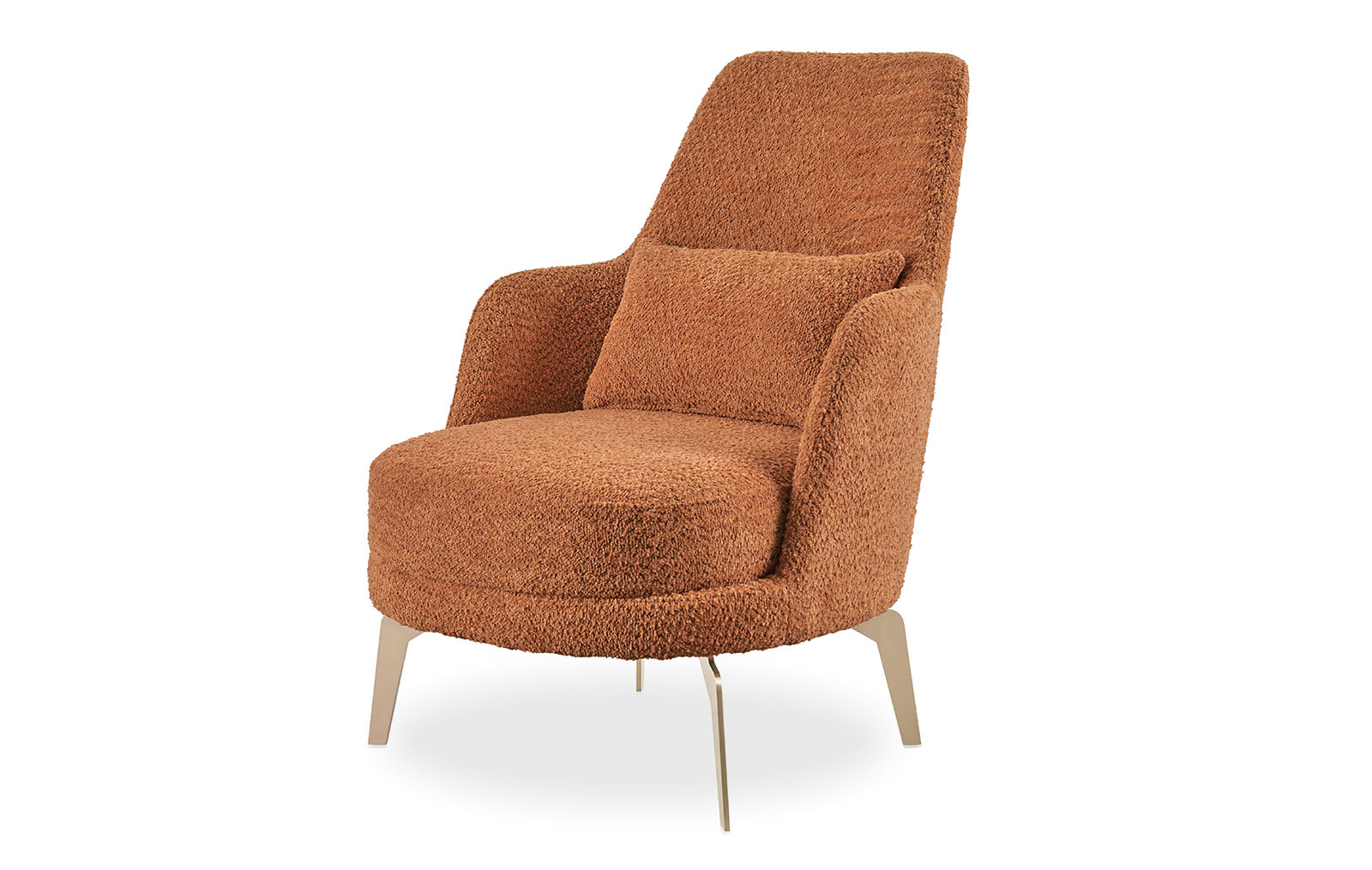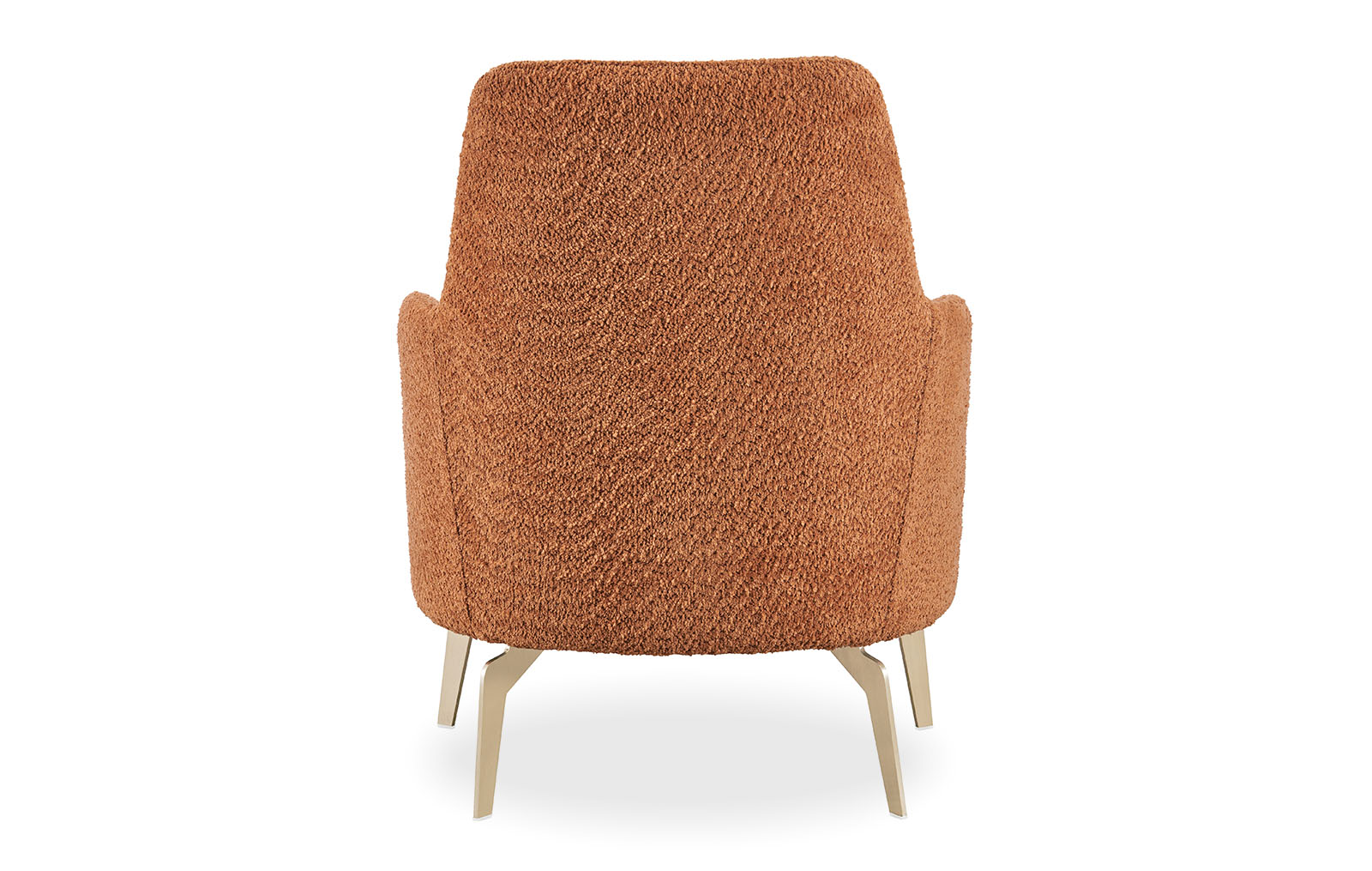 Его обивка изготовлена из ткани тедди терракотового оттенка, элегантного и благородного, хорошо гармонирующего с другими цветами.