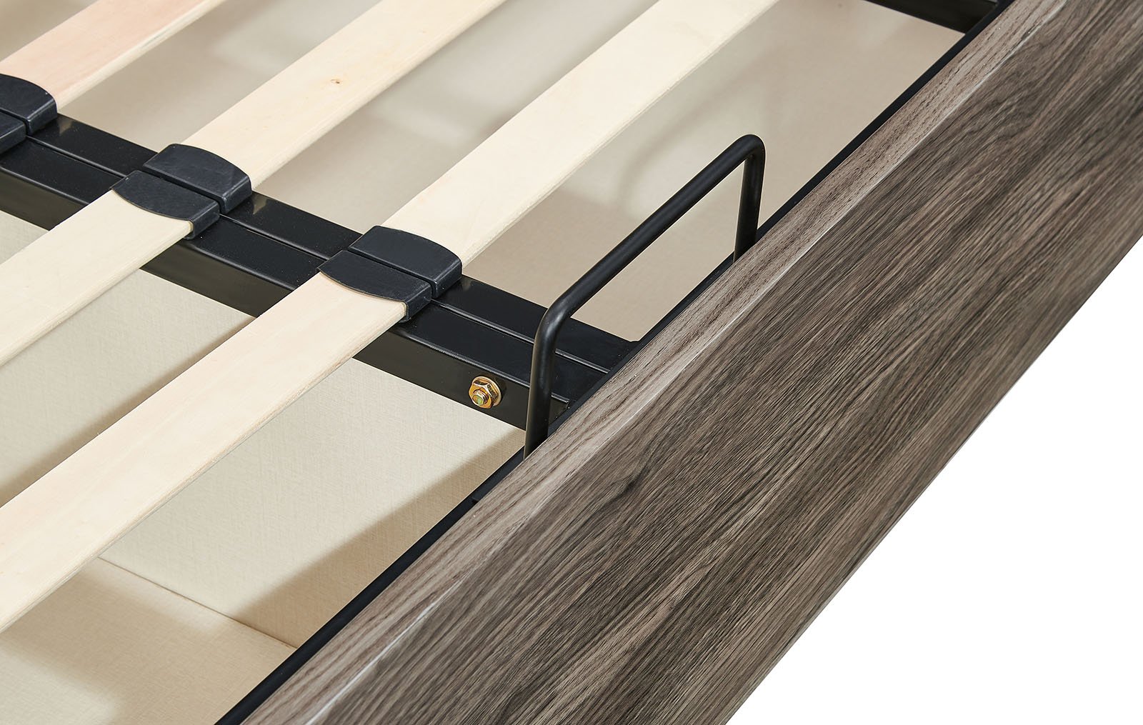 Кровать оснащена подъемным механизмом. Ее можно использовать как место для хранения вещей. Это позволяет экономить пространство комнаты и не ставить дополнительный шкаф или комод.