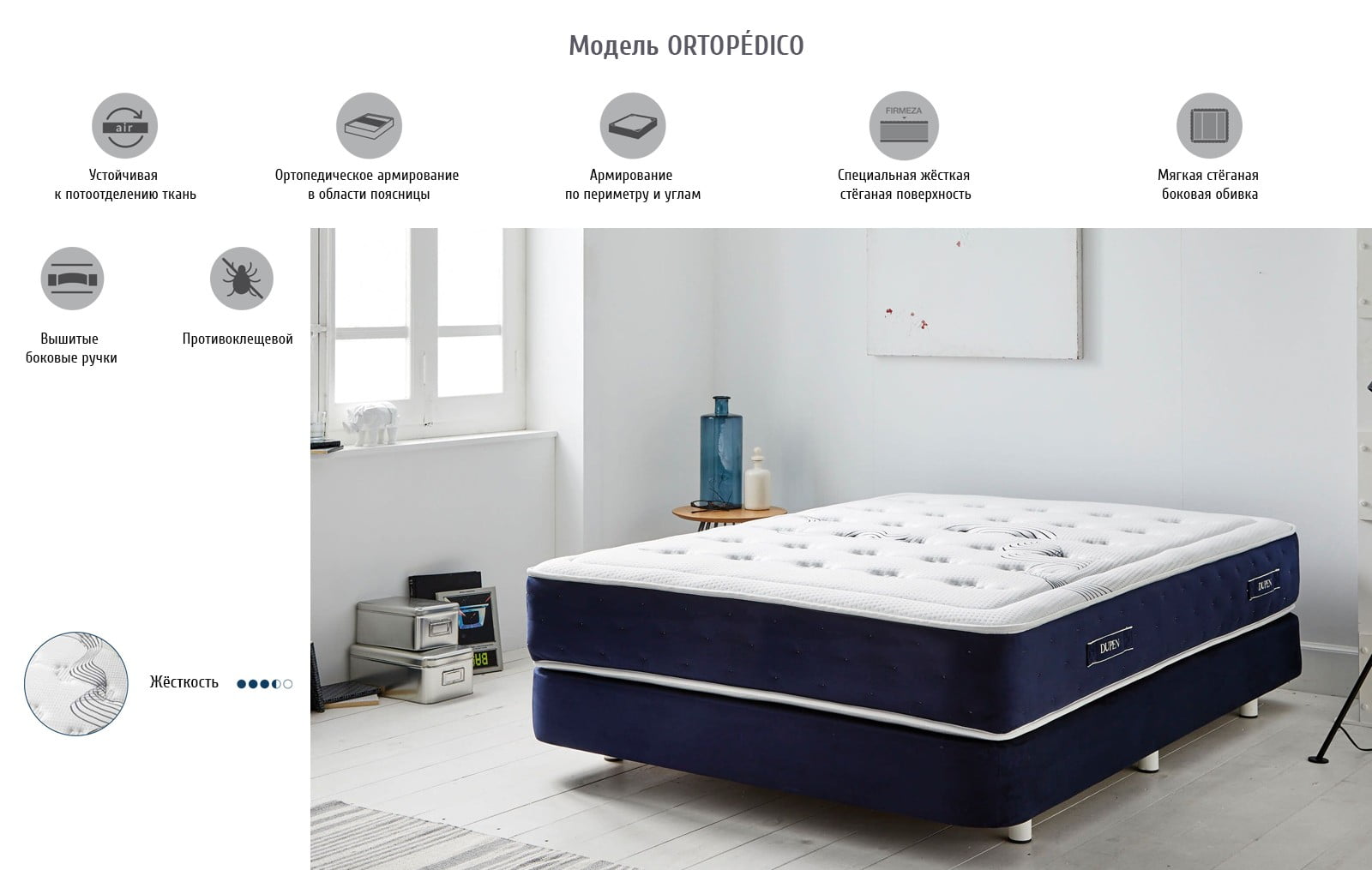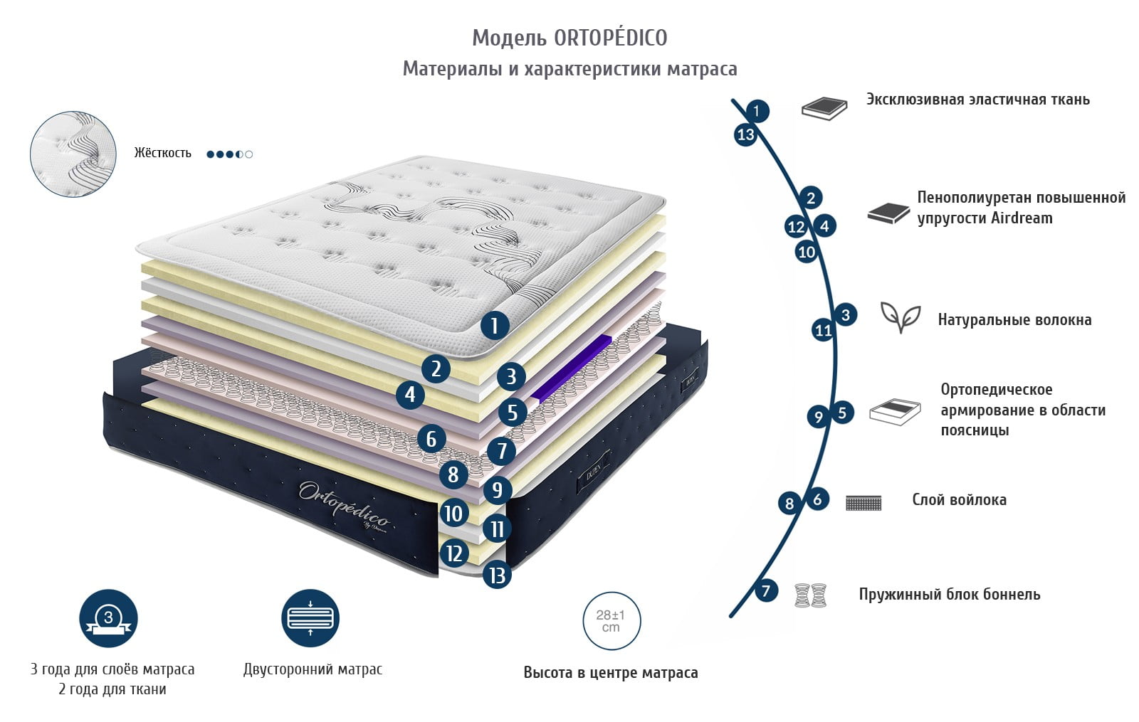 Матрасы производятся в Испании, сделаны из экологически чистых и долговечных материалов с отличными эксплуатационными характеристиками.