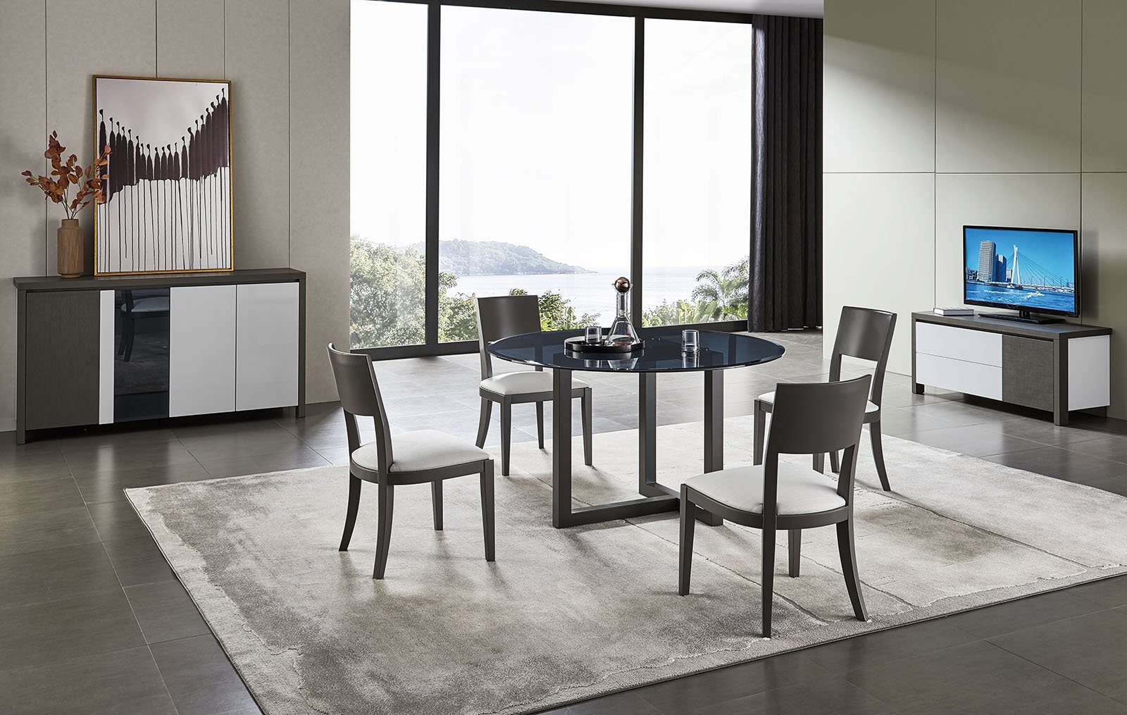 Сочетание форм, цветов и фактур делает стол Amsterdam (Амстердам) универсальным. Его круглая столешница диаметром 130 см изготовлена из закаленного стекла. Дополняют модель ножки высотой 75 см.