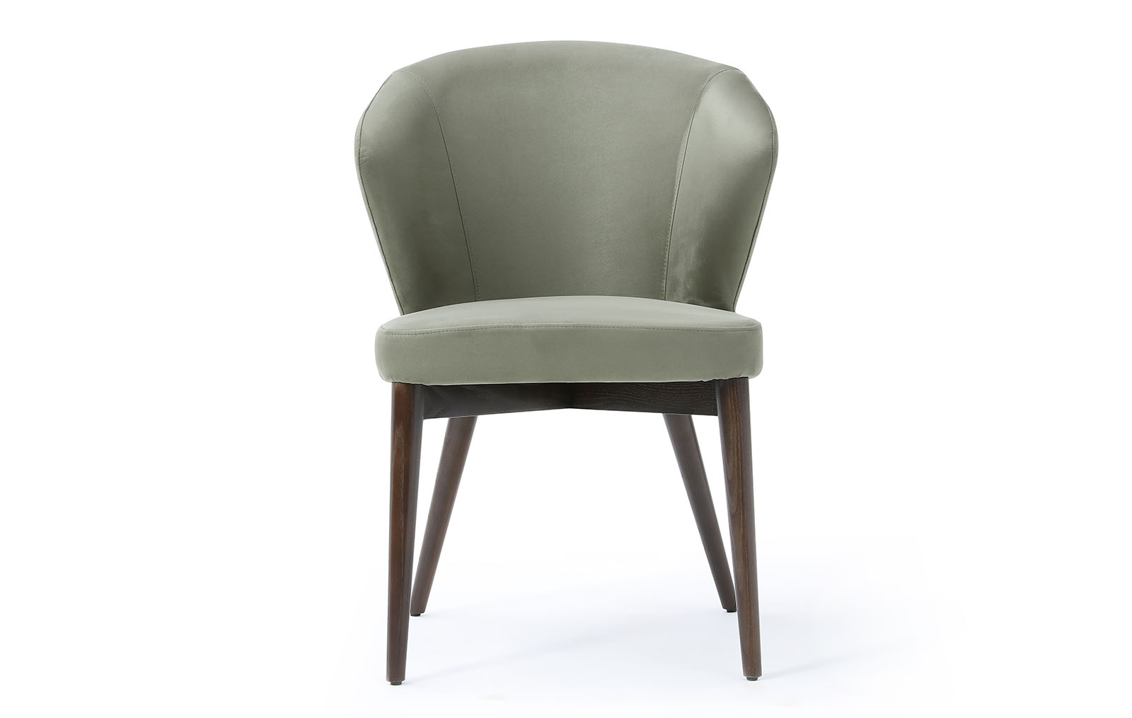 Обеденный стул Benedict (Бенедикт) имеет обивку зеленого оттека и ножки из ясеня, тонированные в оттенок ореха.