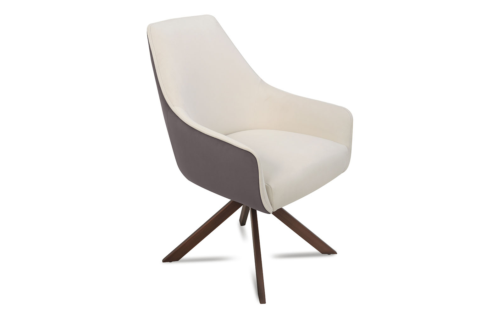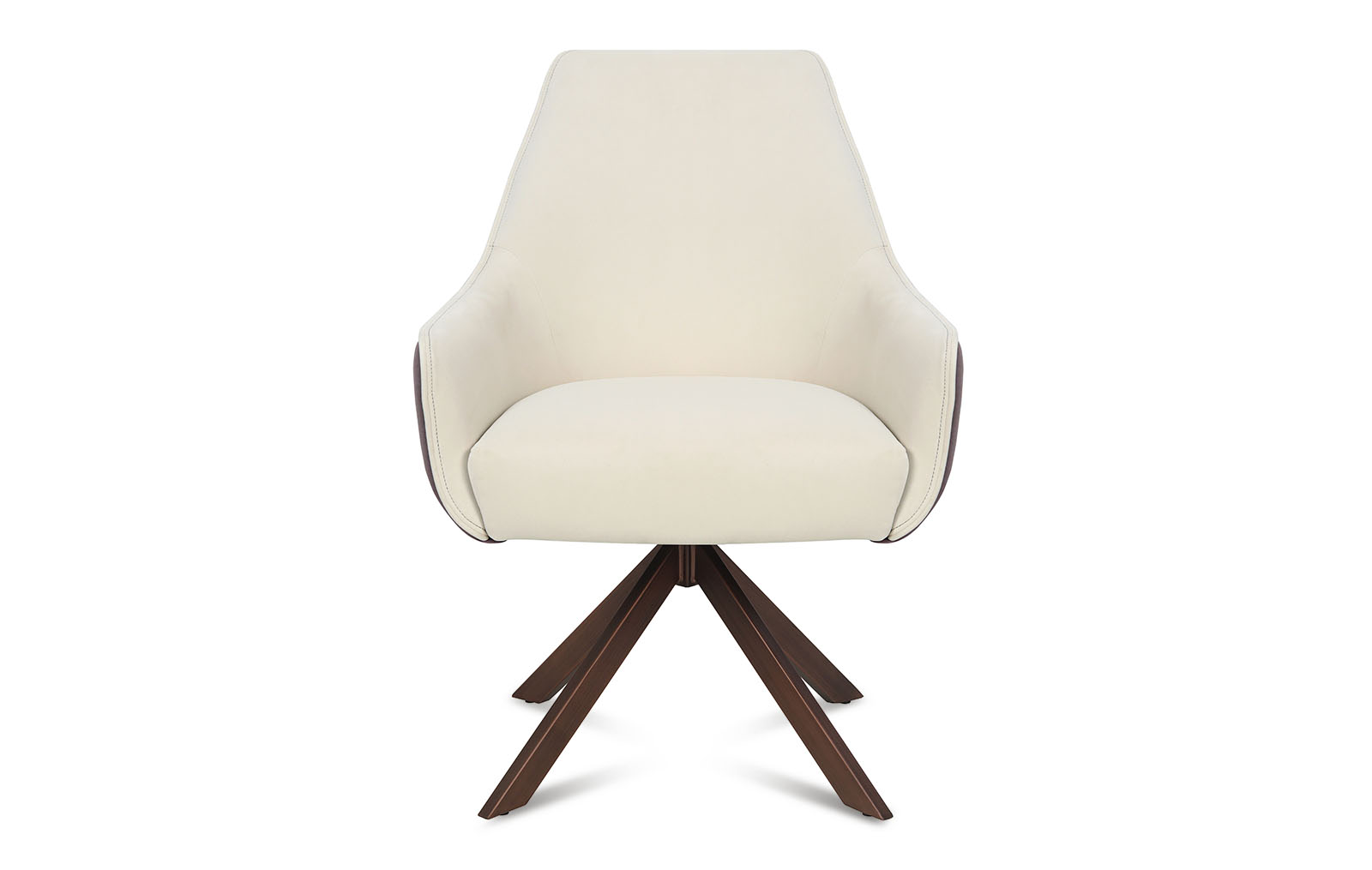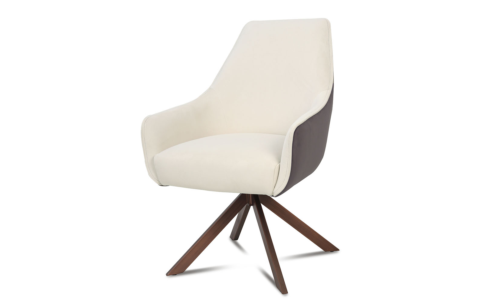Обеденный стул Emma может вращаться на 180° и самостоятельно возвращаться в исходное положение, благодаря поворотно-возвратному механизму.