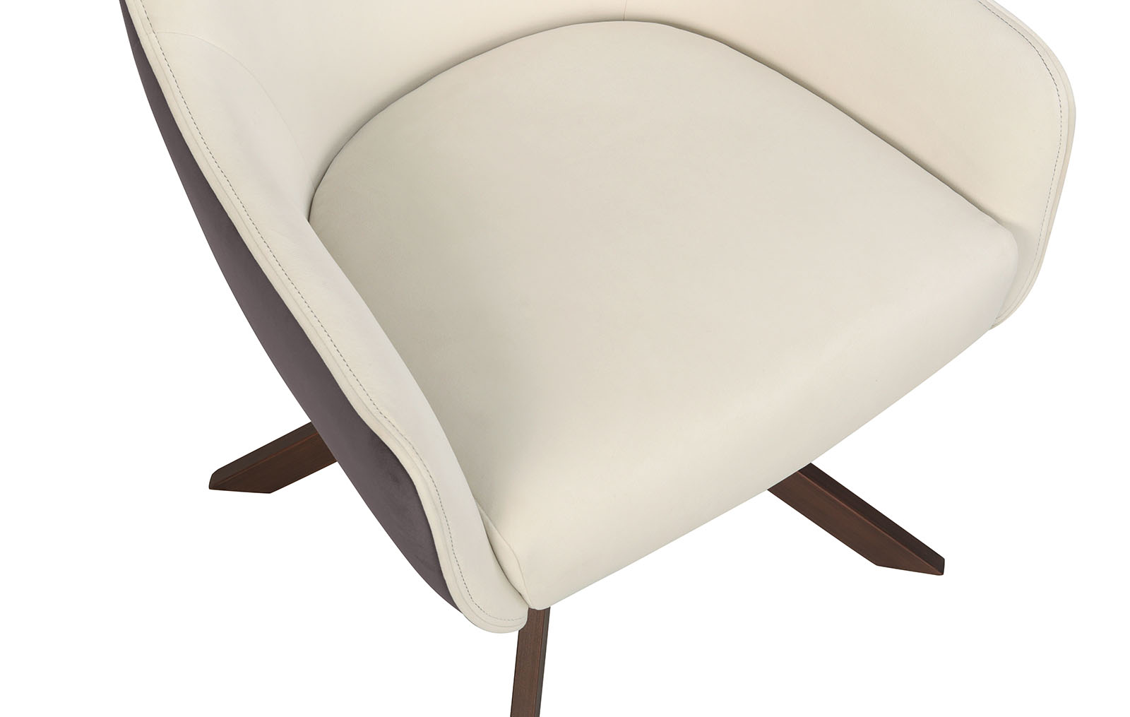 Его обивка из велюра представляет комбинацию бежевого цвета с внутренней стороны и коричневого со стороны спинки.