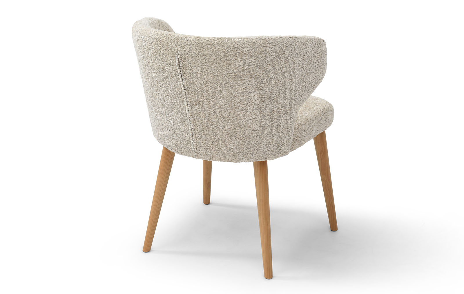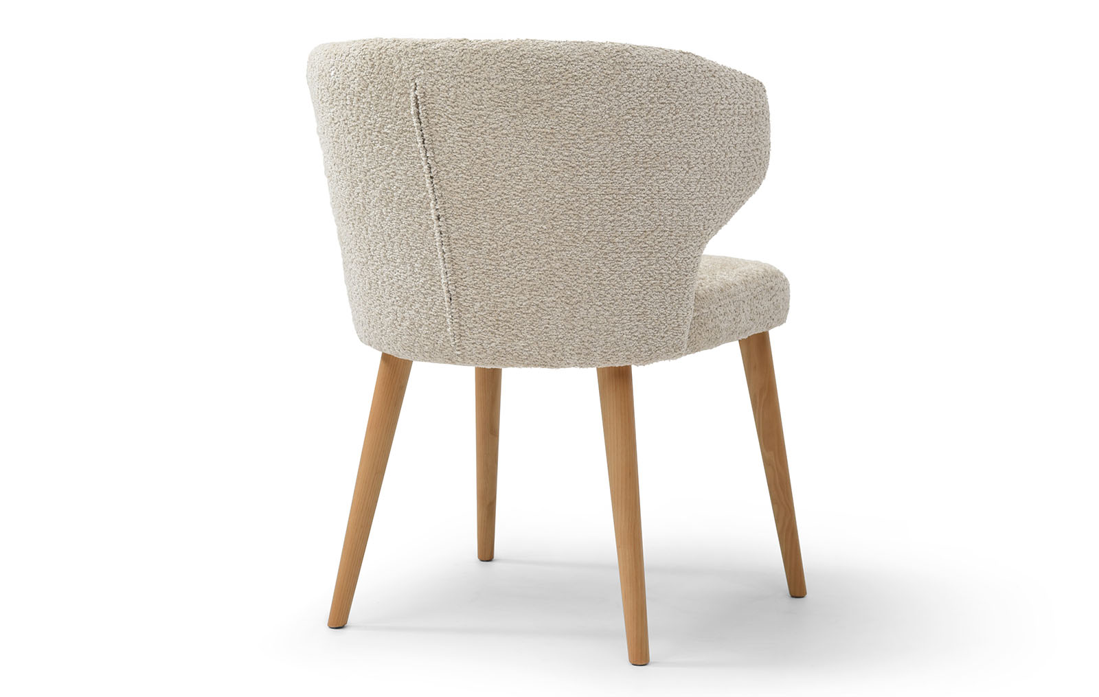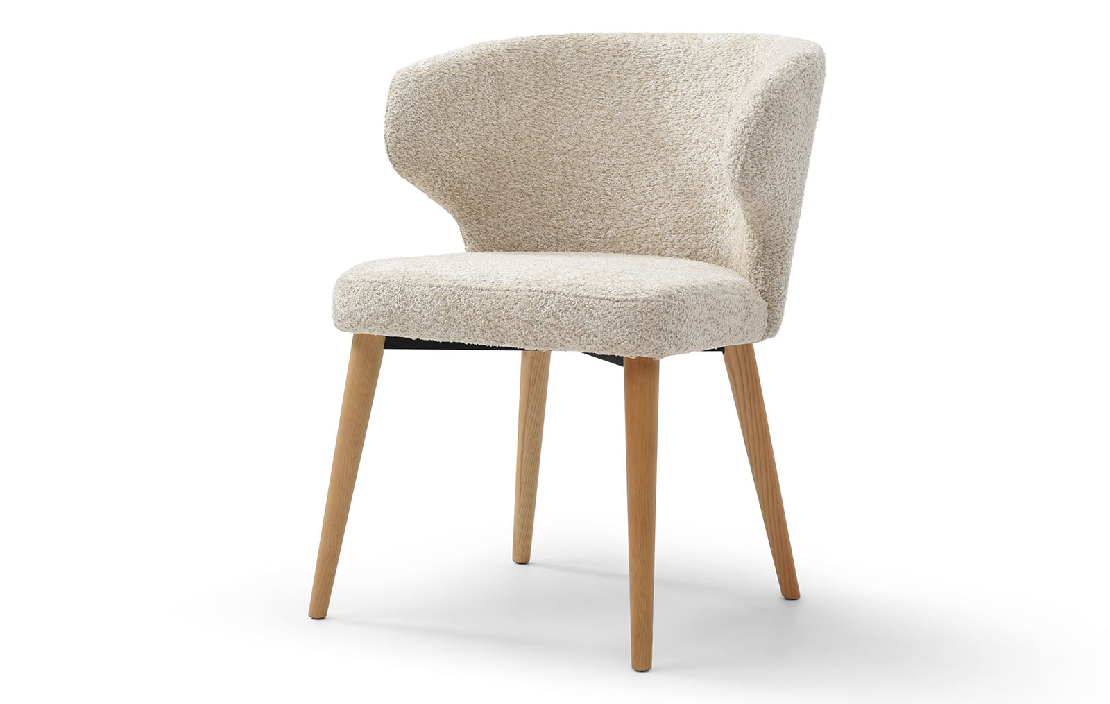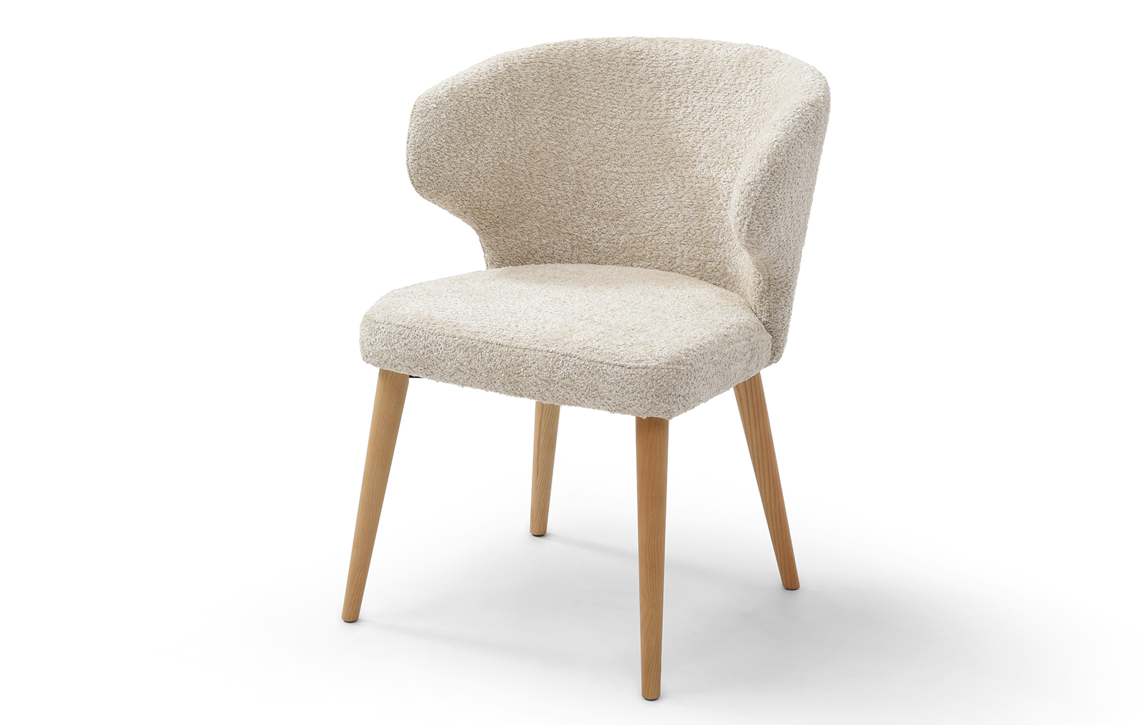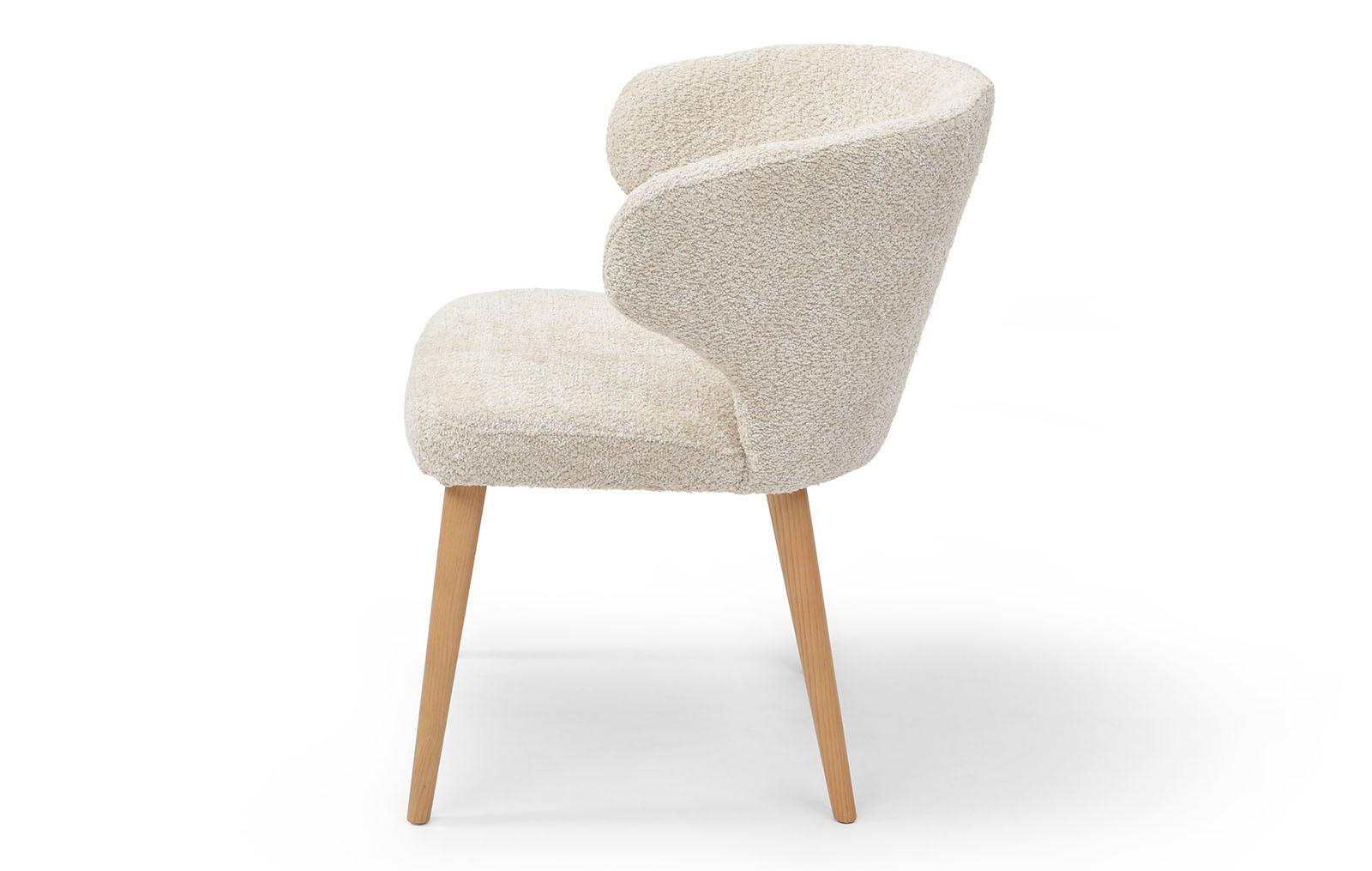 Обеденный стул Simona имеет обивку из ткани тедди и ножки из дерева в оттенке ясеня.