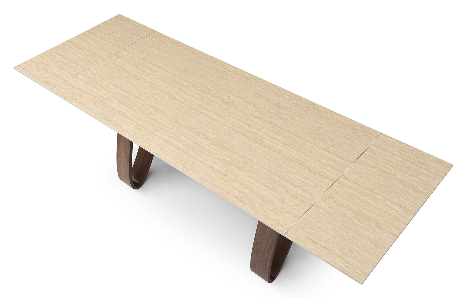 Длину стола можно увеличить с помощью двух выдвижных частей по 40 см. Две дополнительные выдвижные поверхности удобно прячутся под столешницей.
