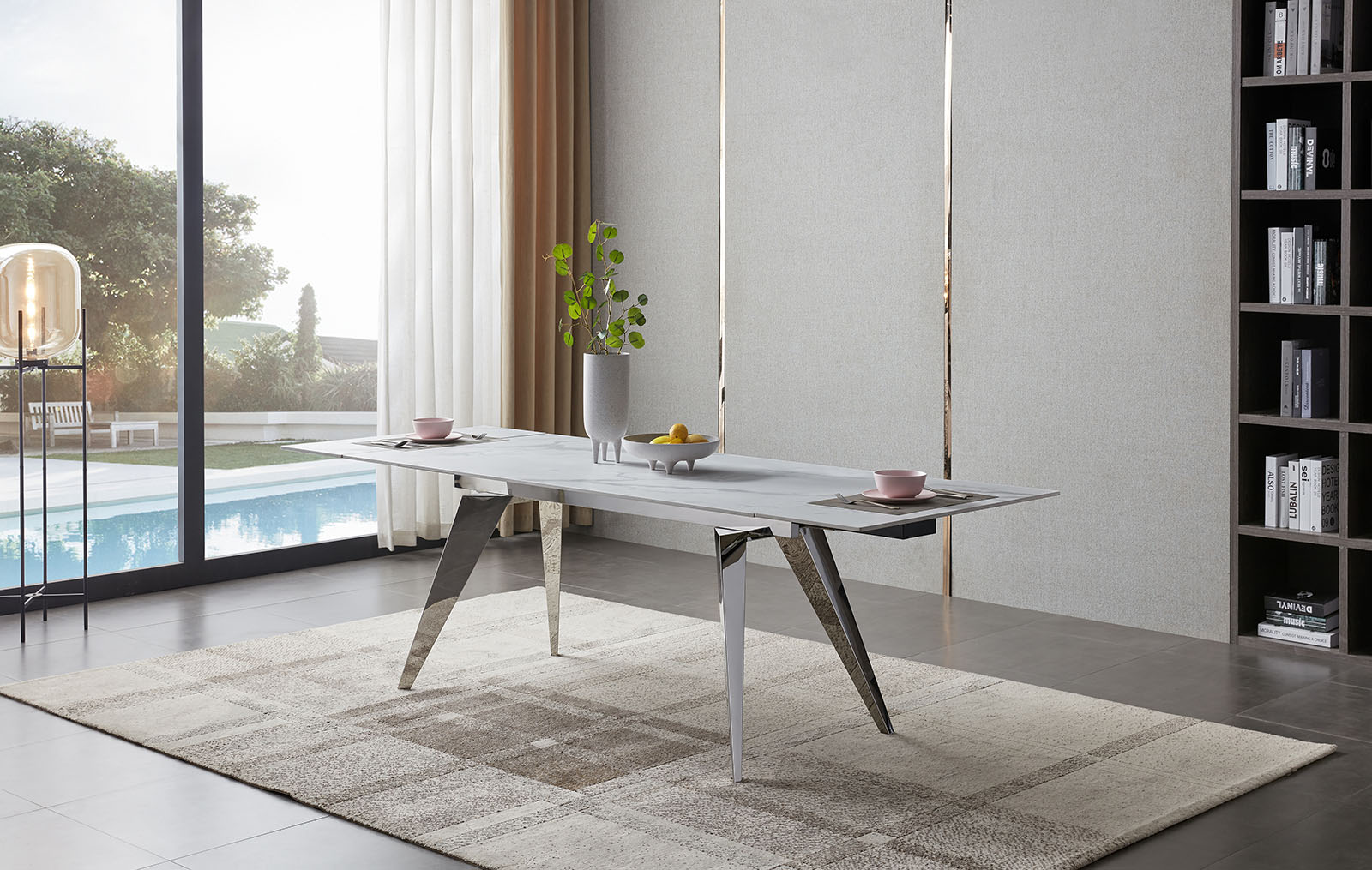 Стол раскладной Ramses 180-250, белый мрамор/хром
