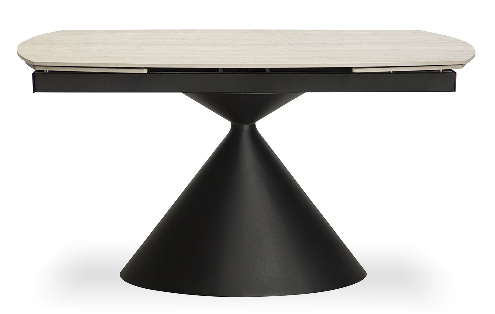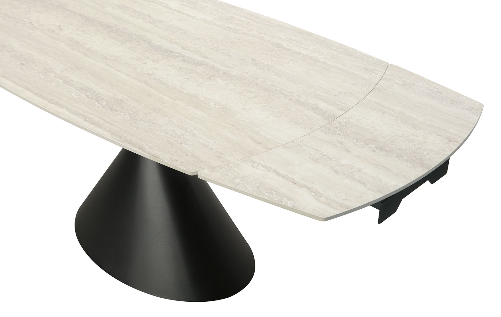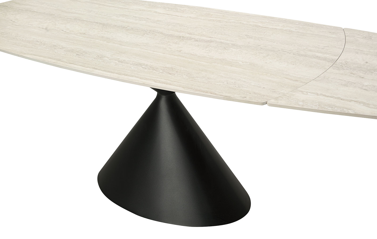 Стол Sylvia со столешницей из камня в цвете травертин на черном металлическом подстолье отлично впишется в интерьер в современном стиле.