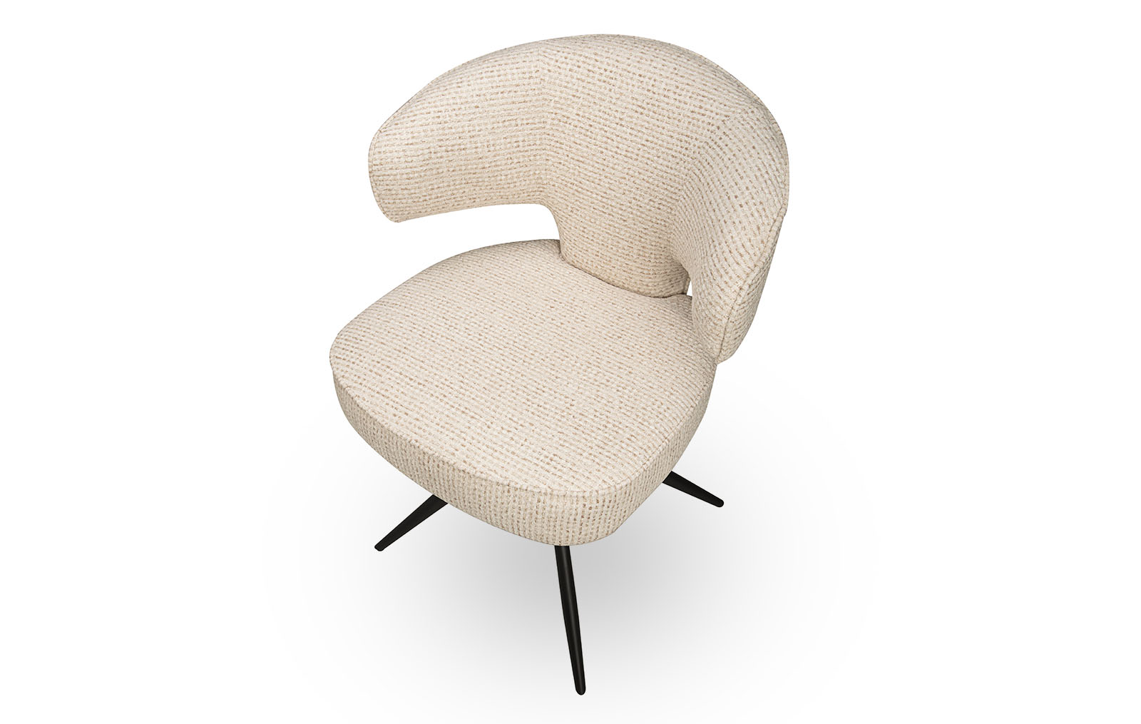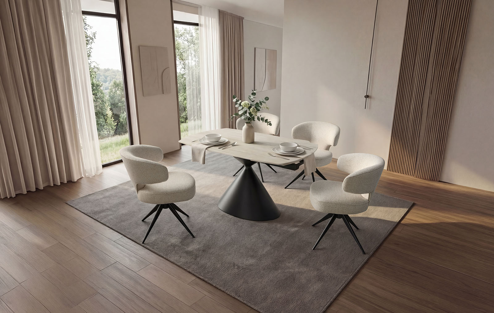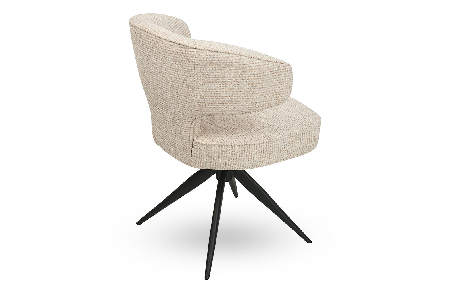 Стул Blanca может вращаться на 180° и самостоятельно возвращаться в исходное положение, благодаря поворотно-возвратному механизму.