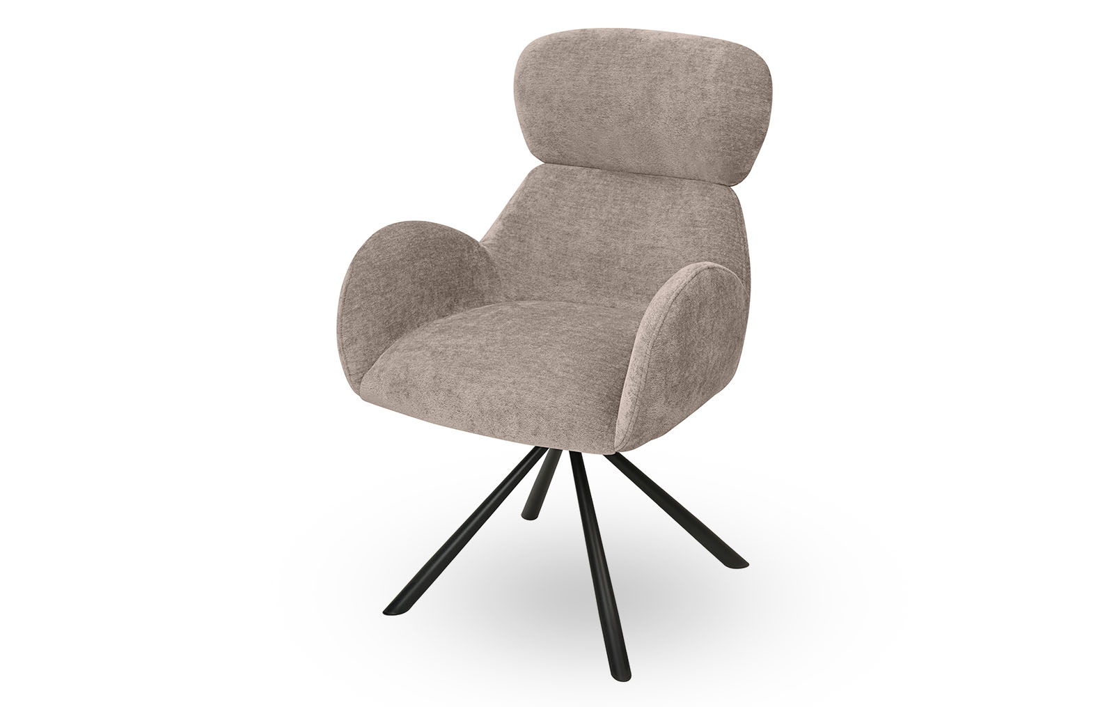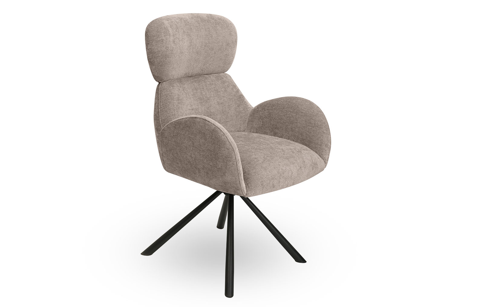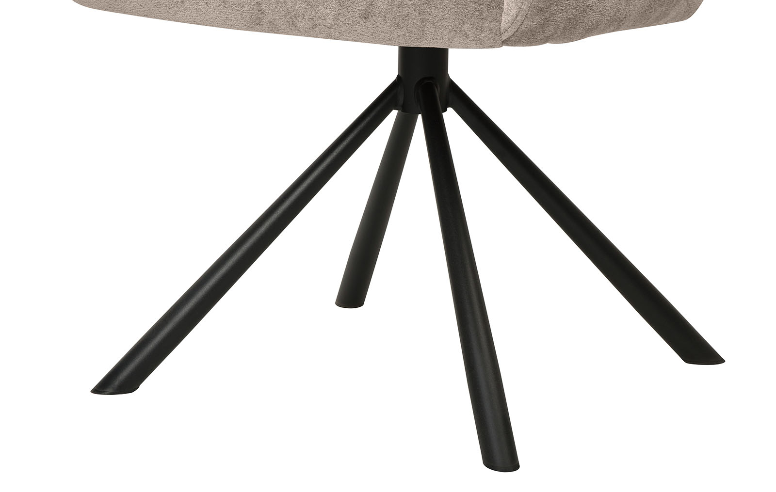 Обивка из шенилла нейтрального бежевого оттенка, ножки из металла в защитном напылении черного цвета.