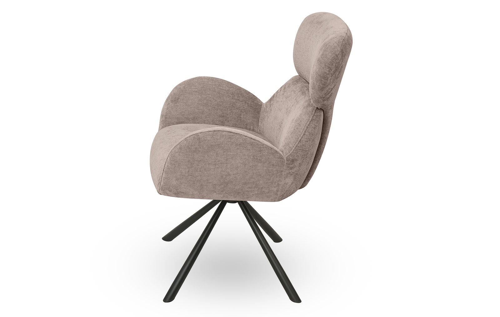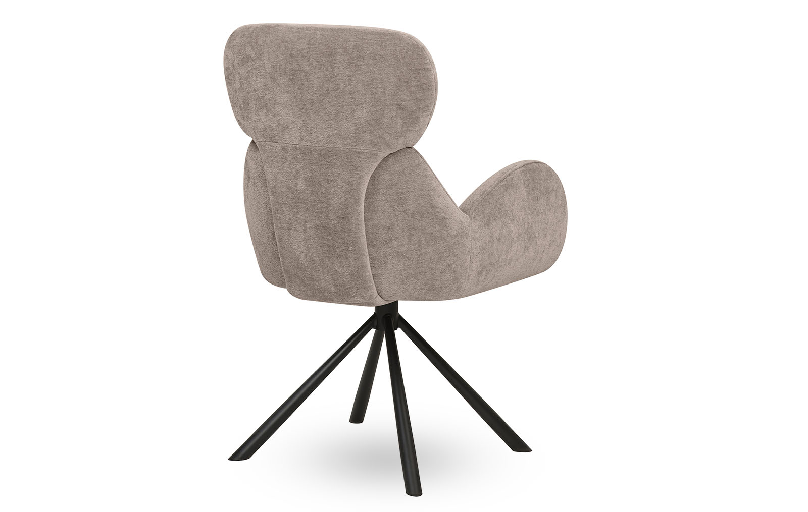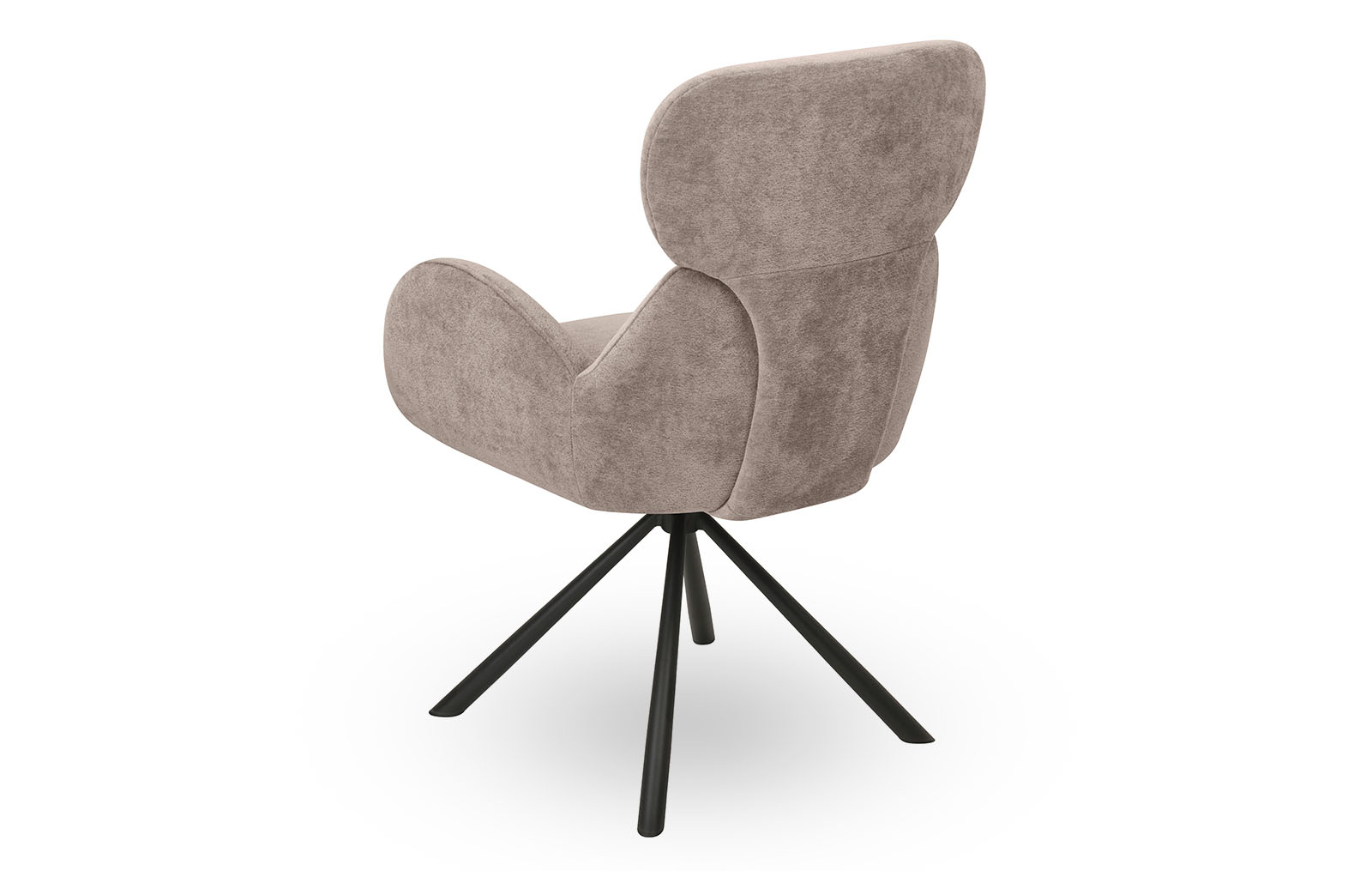 Обивка из шенилла нейтрального бежевого оттенка, ножки из металла в защитном напылении черного цвета.