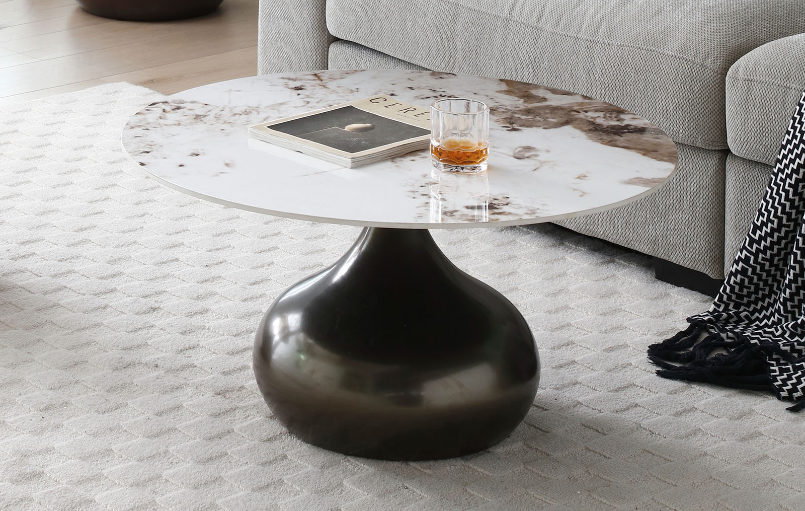 - Стол журнальный Aria (80), светлая керамика/бронза