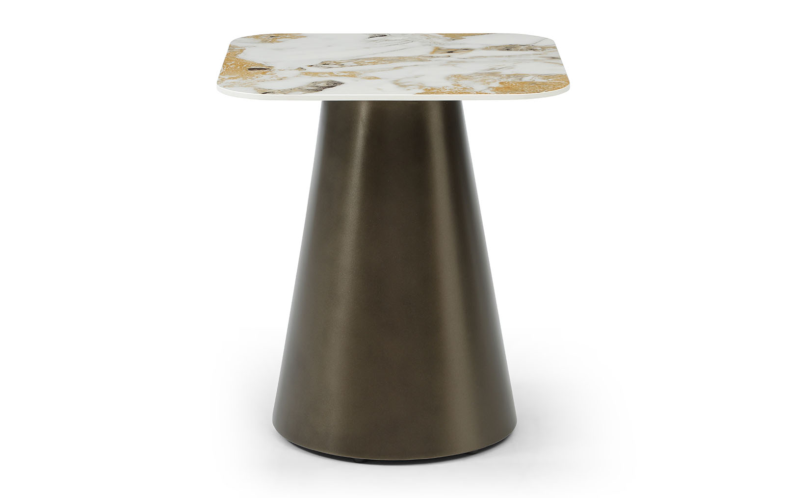 Столешница с золотистыми узорами на светлом фоне изготовлена из глянцевой керамики толщиной 12 мм, что даёт ей такие преимущества, как износостойкость, долговечность, устойчивость к царапинам, пятнам, температуре и влаге. Керамика легко очищается от любых загрязнений.