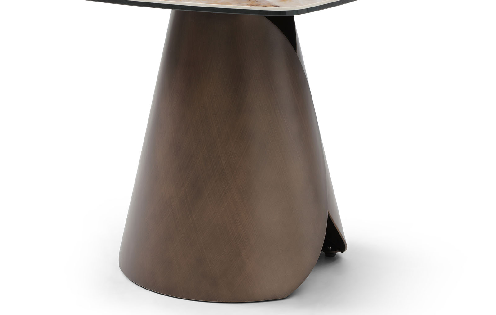 Подстолье из металла в медном оттенке.