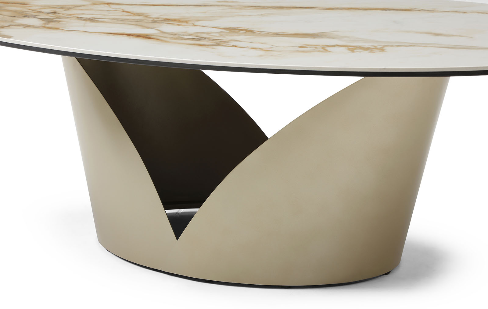 Металлическое подстолье в оттенке золотистый шампань придаёт модели элегантность и лёгкий акцент роскоши, оставаясь при этом устойчивым и надёжным.
