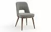 Обеденный стул Agata (Агата) имеет обивку из серо-коричневой рогожки и ножки из дерева в оттенке ореха.