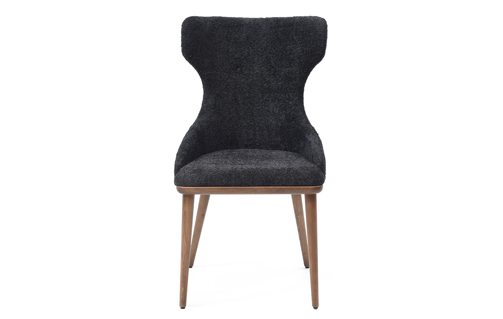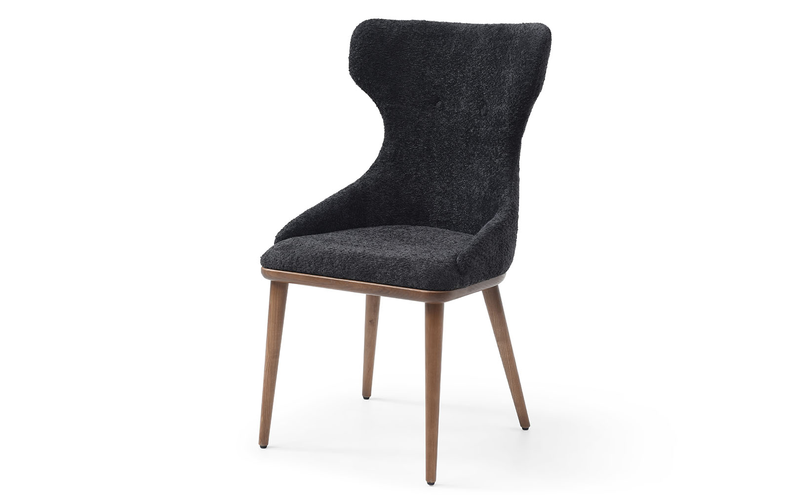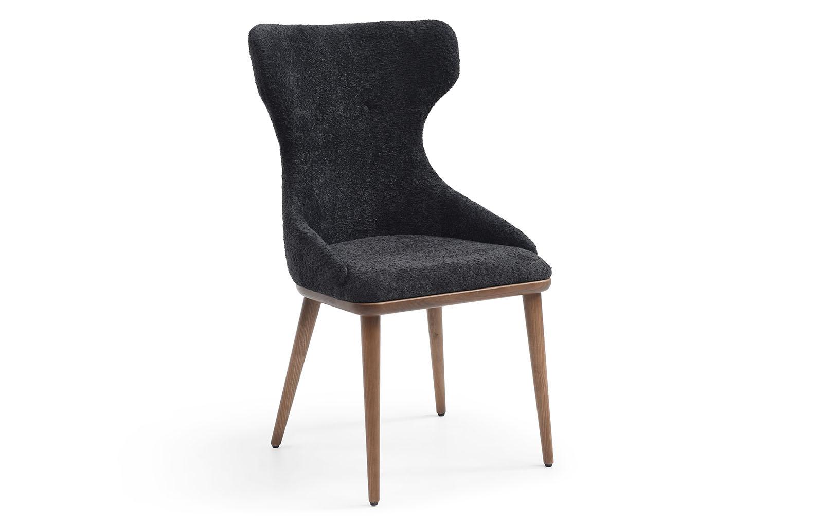 Обеденный стул Augusta (Августа) имеет обивку из ткани графитового оттенка и ножки из дерева в оттенке ореха.