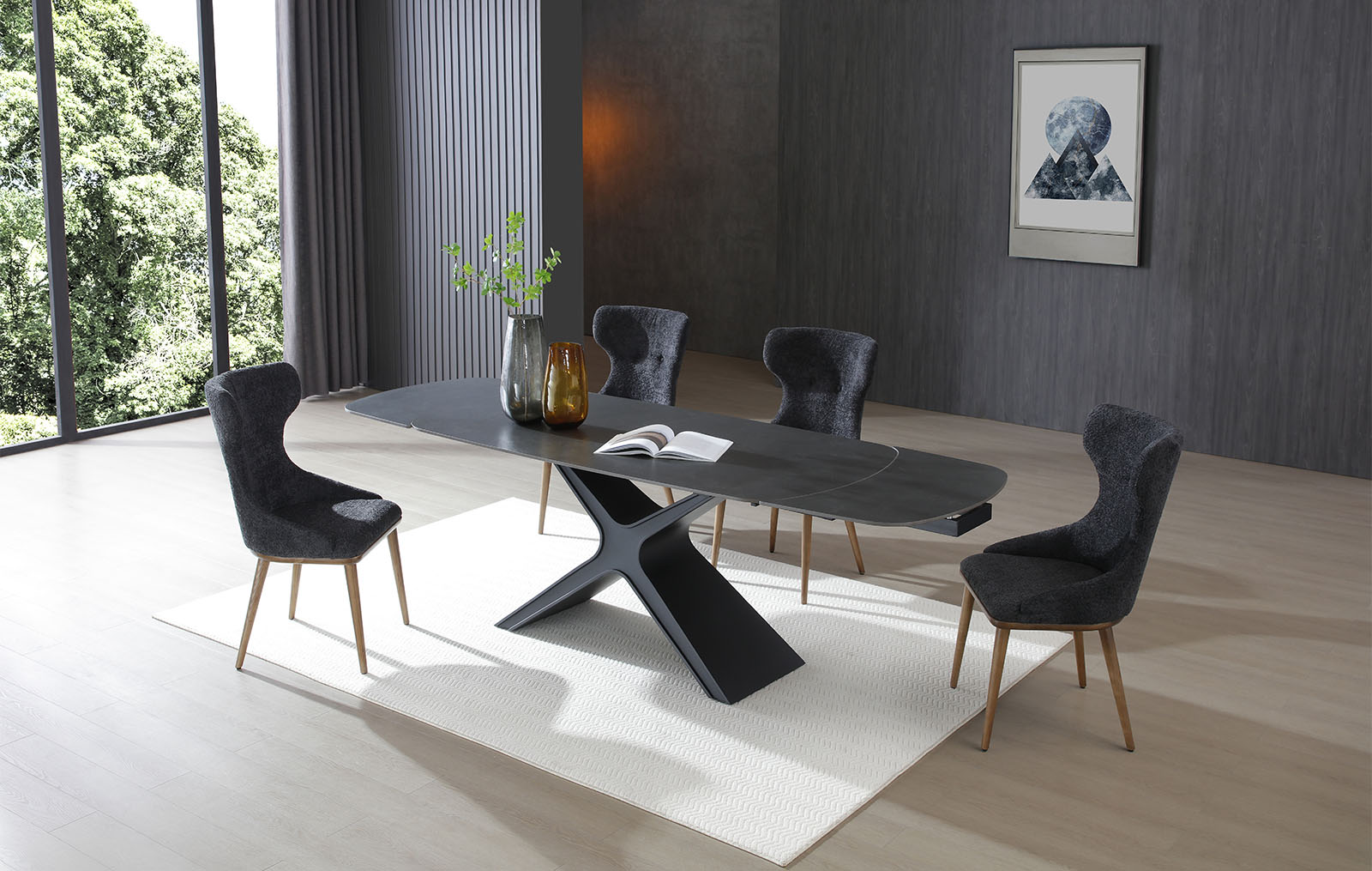 Стол раскладной Sorrento 180-240, черная керамика/ясень