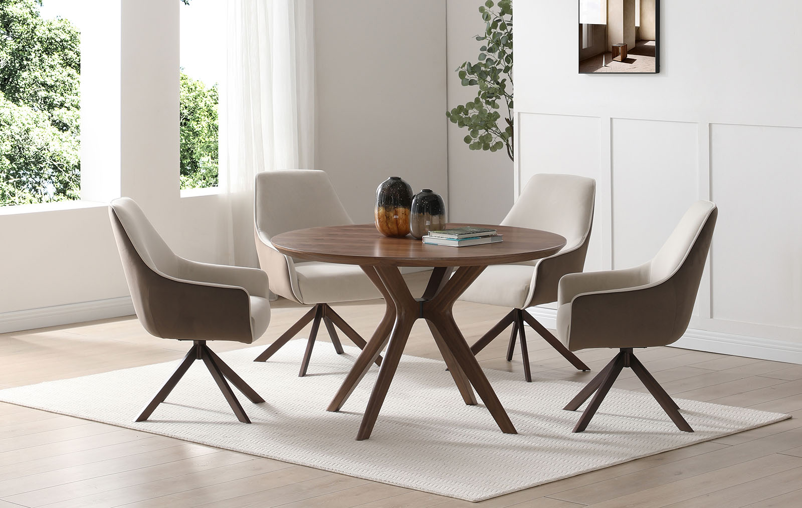 Обеденный стул Emma (Эмма) может вращаться на 180° и самостоятельно возвращаться в исходное положение, благодаря поворотно-возвратному механизму.