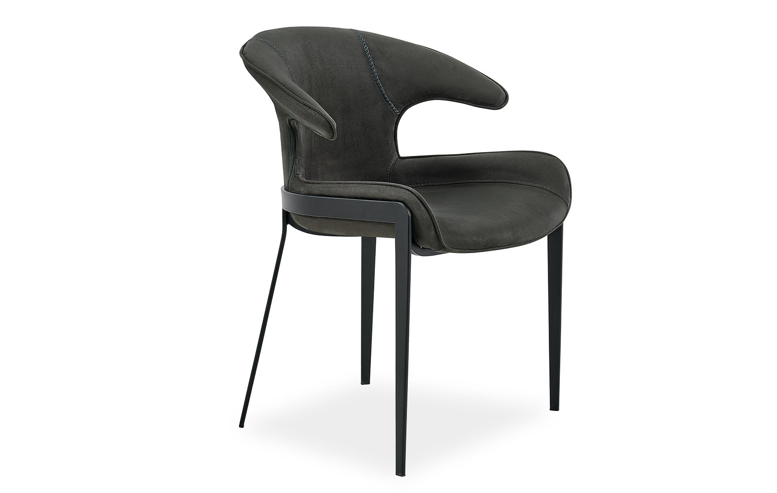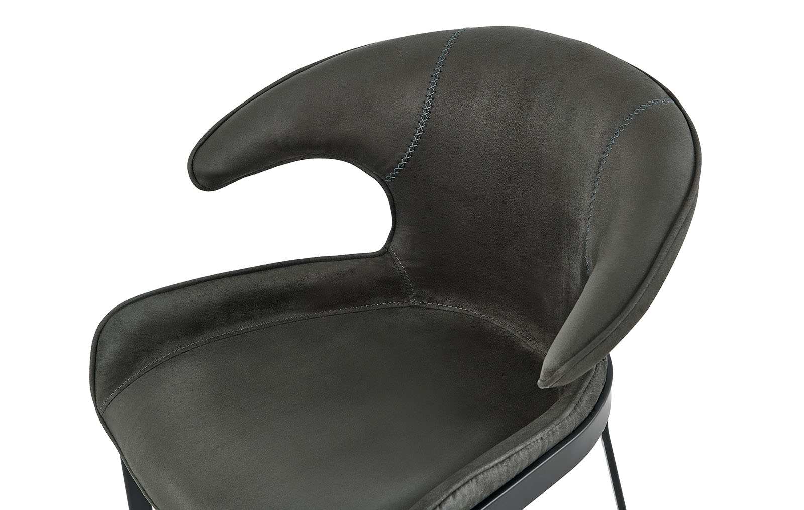 В основе стула – прочная стальная рама. Обивка графитового оттенка.