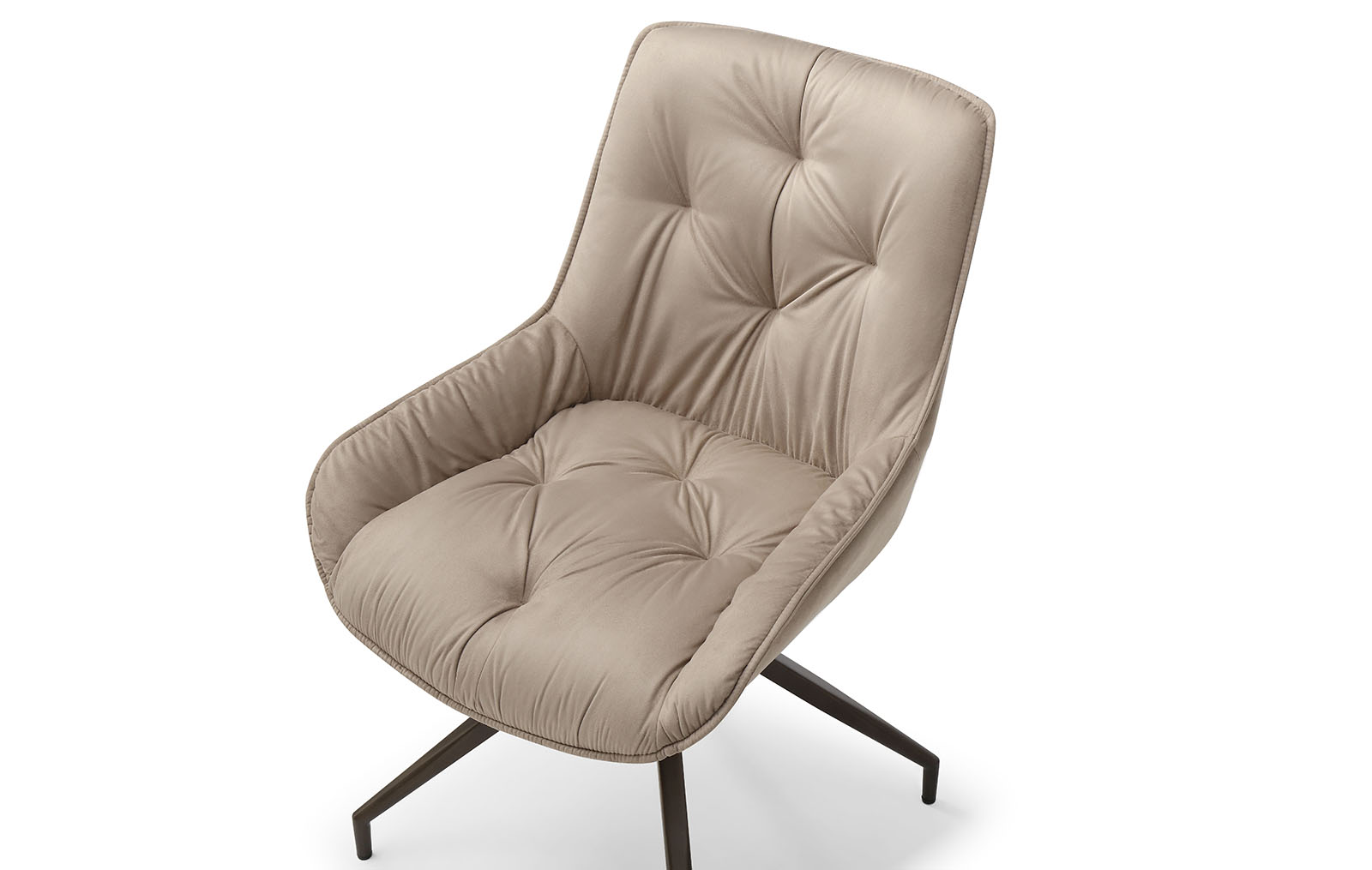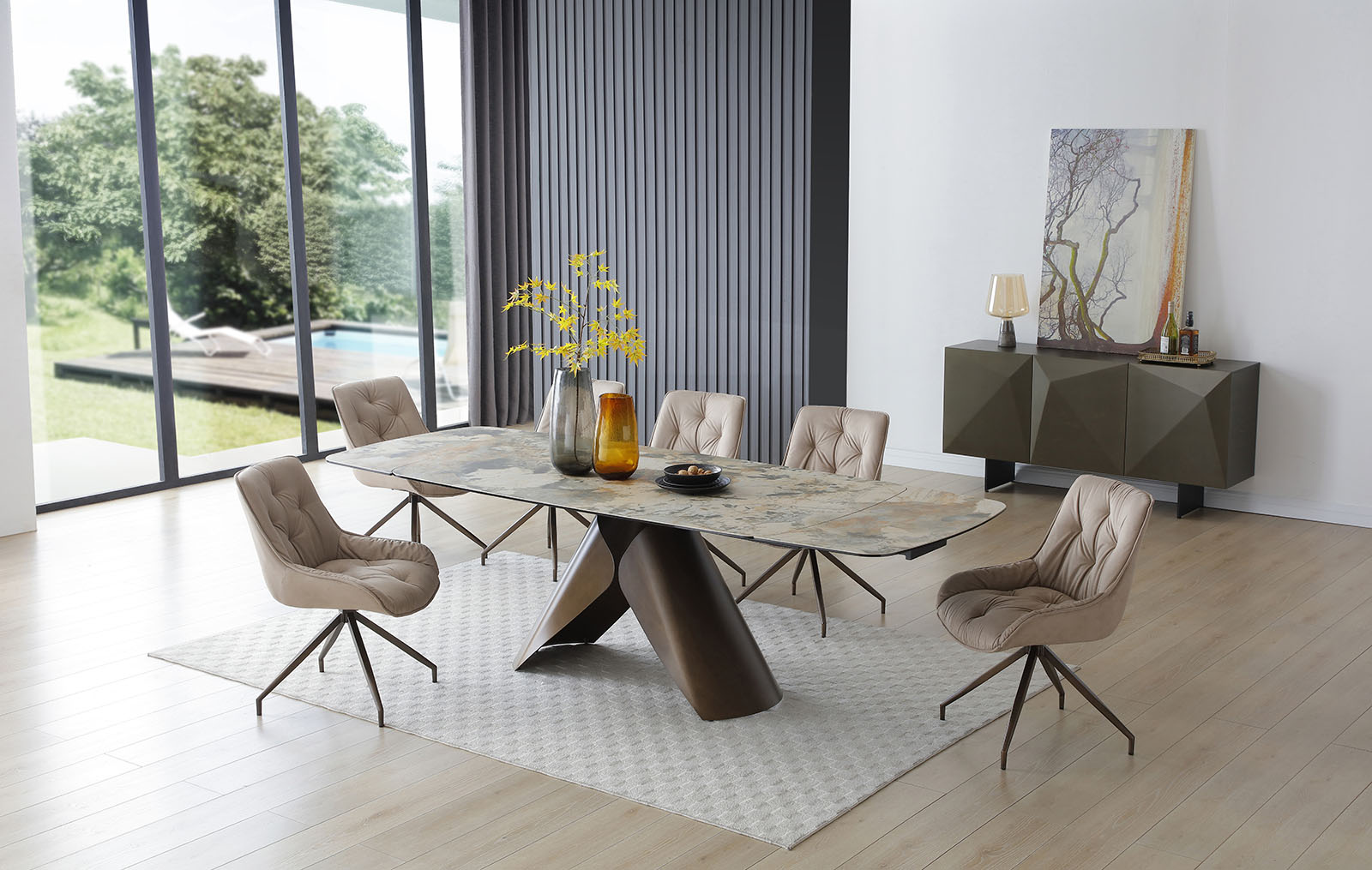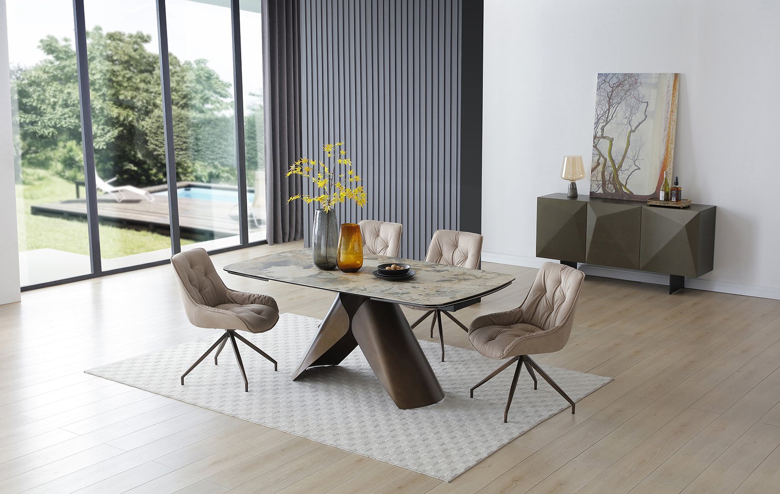 Обеденный стул Joely (Джоэли) может вращаться на 180° и самостоятельно возвращаться в исходное положение, благодаря поворотно-возвратному механизму.