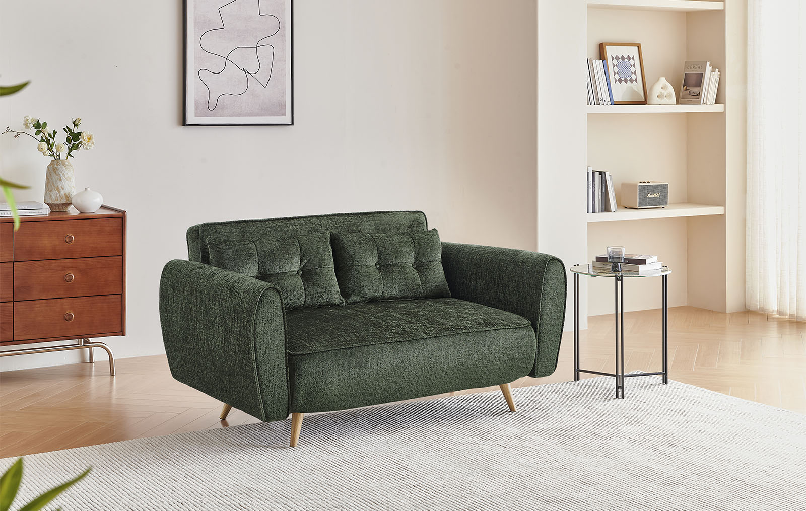 Диван-кровать прекрасно впишется в современную обстановку гостиной, а также в скандинавский стиль.