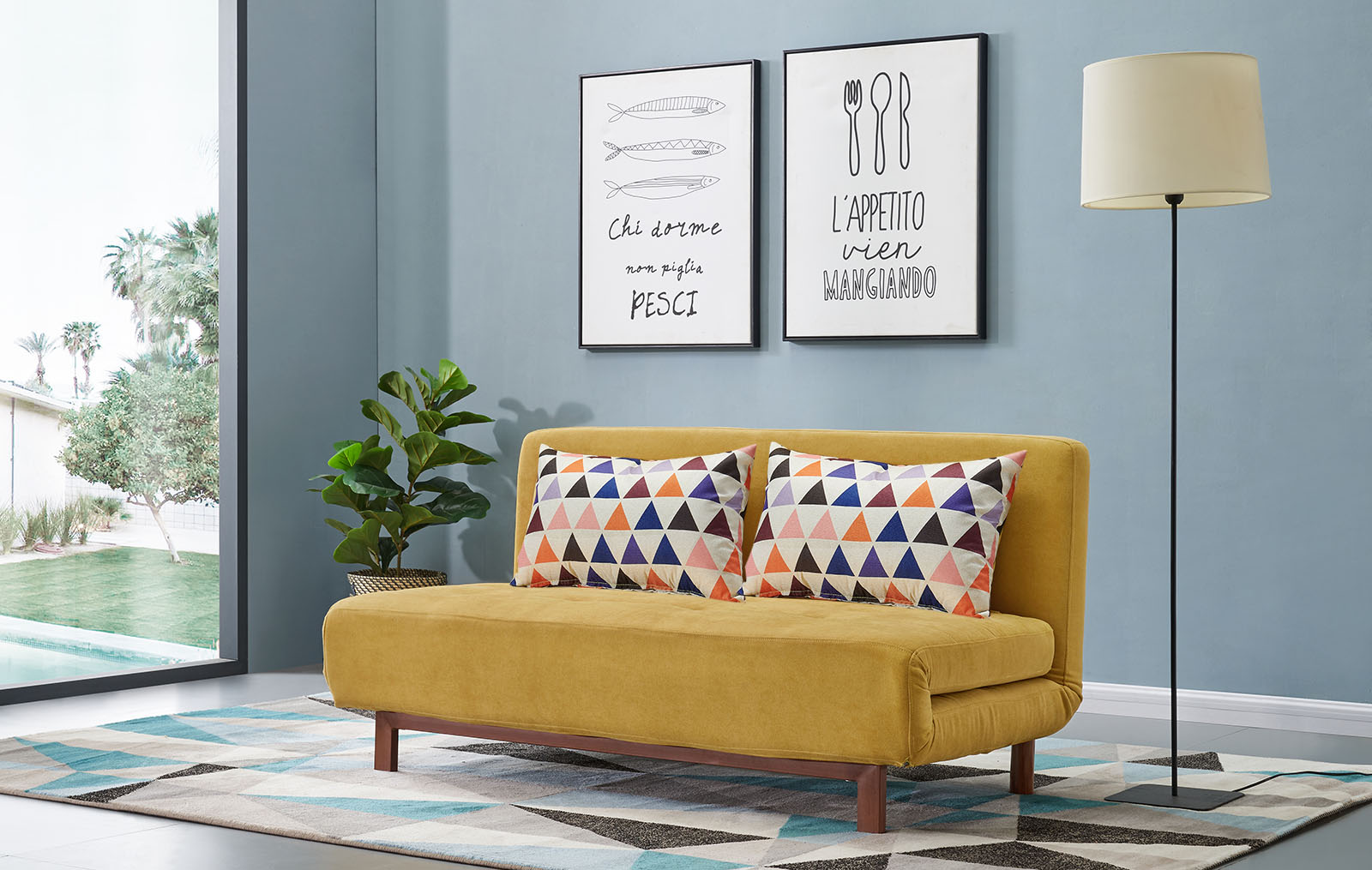 Оптимальное соотношение стильного внешнего вида и высокой функциональности - диван-кровать Doris желтого цвета.