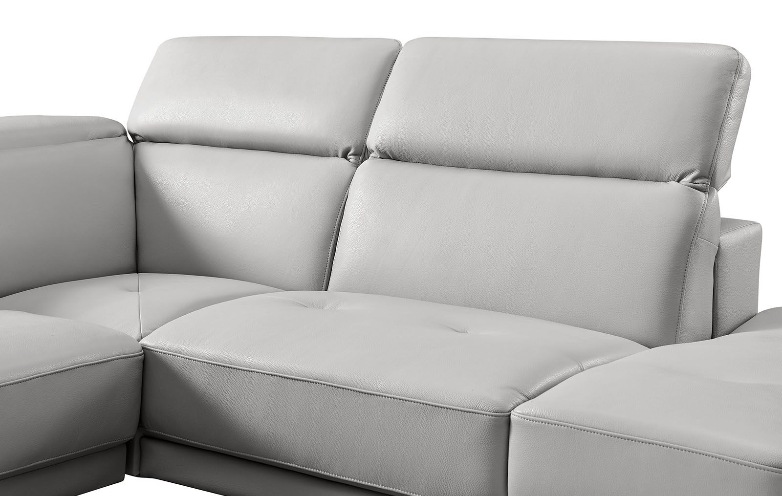 Угловой диван Lester (Лестер) в светло-серой коже имеет регулируемые подголовники, которые можно установить в комфортное для сидящих положение.