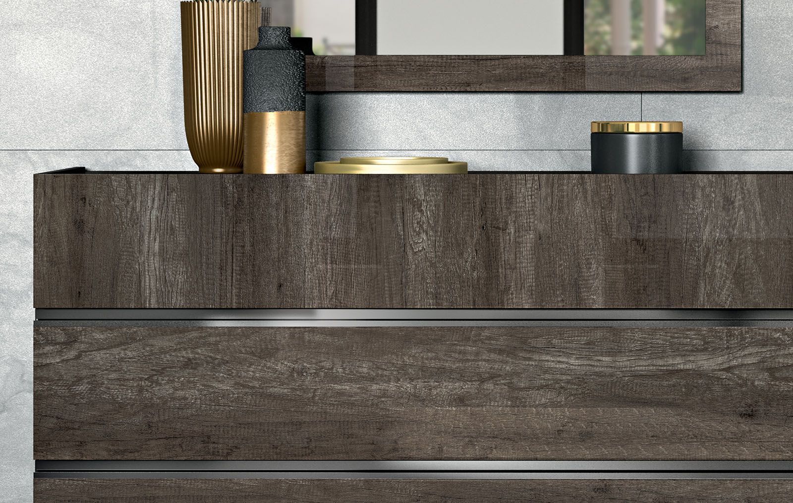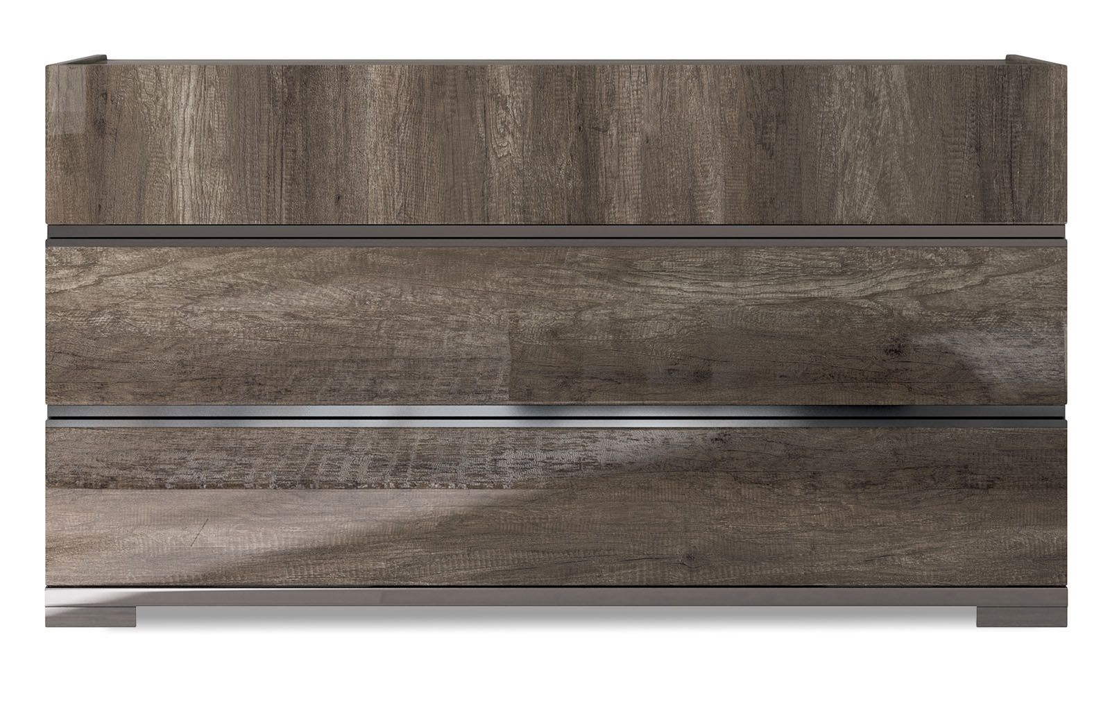 Такой комод имеет очень стильный вид. Корпус и фасады оттенка «винтажный дуб», сделанные из МДФ с глянцевым лаковым покрытием, прекрасно сочетаются с хромированными деталями: ручками и основанием. Ящики закрываются очень плавно, благодаря тому, что оснащены доводчиками.