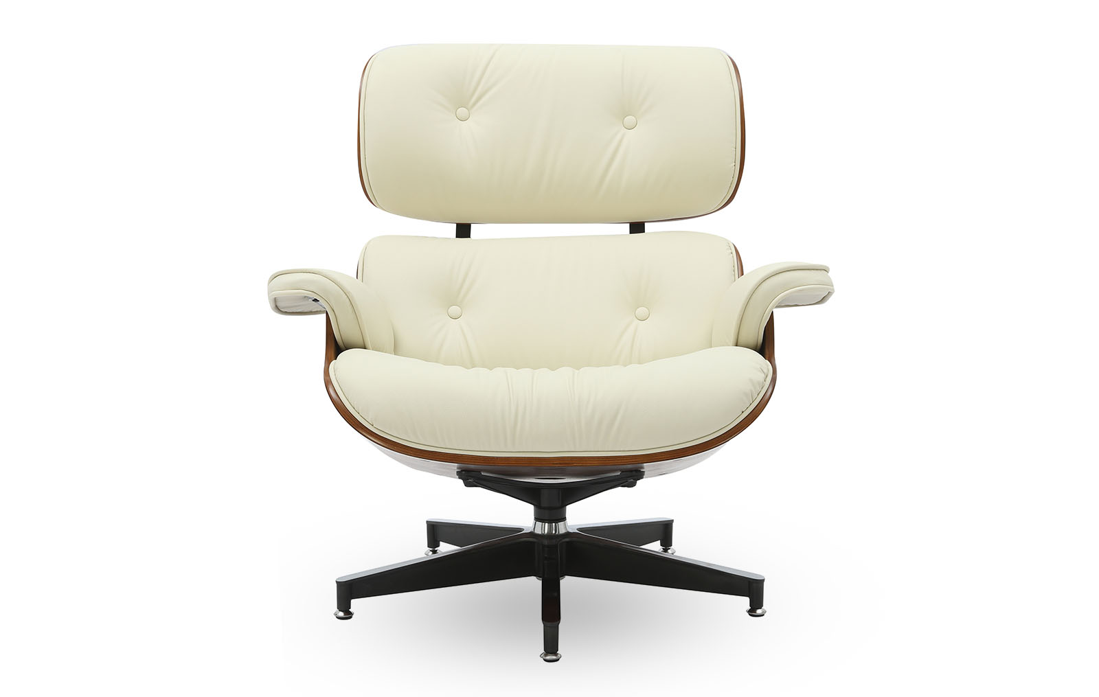 - Комплект кресло и оттоманка Eames Lounge, кремовый/орех