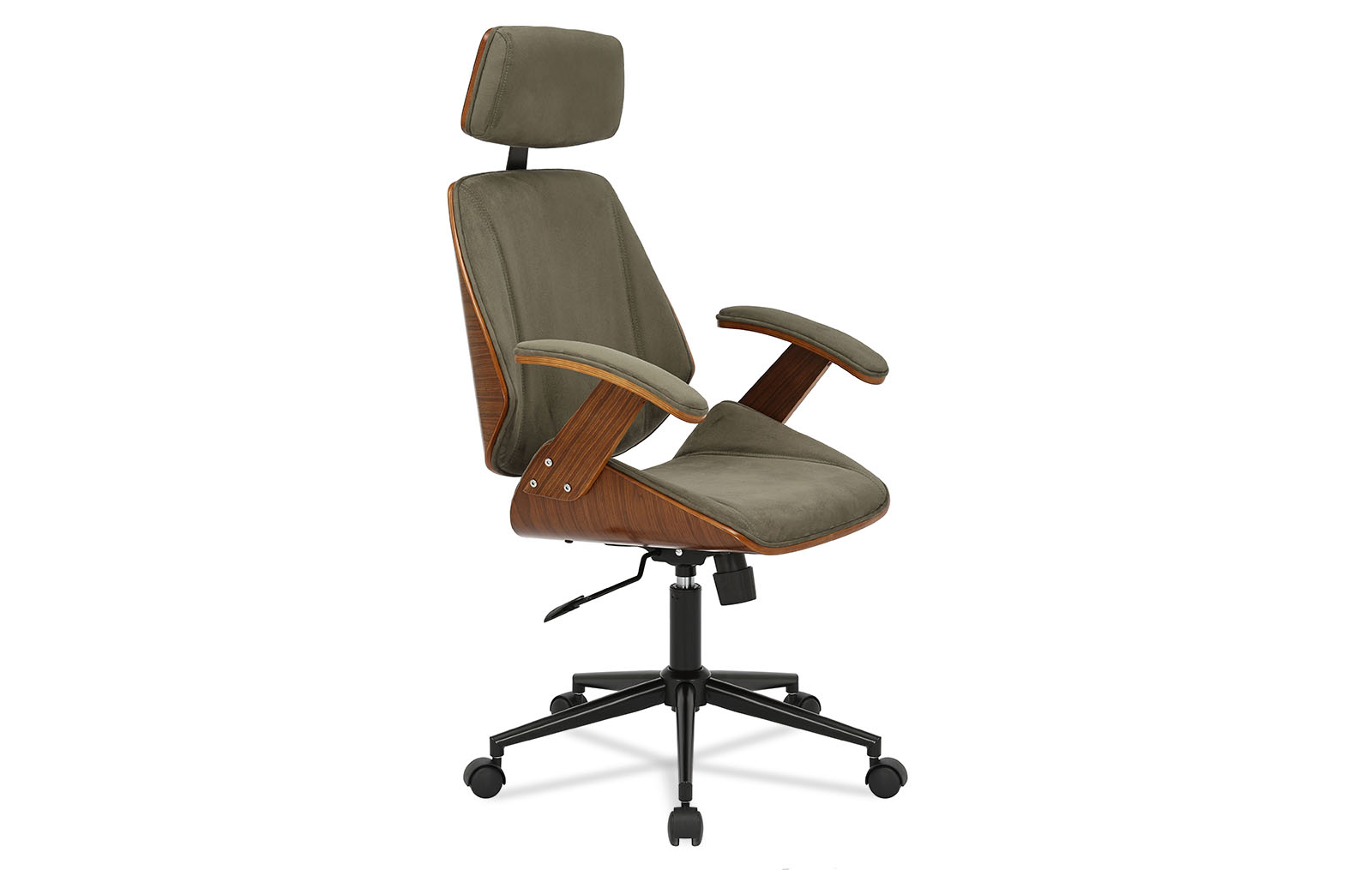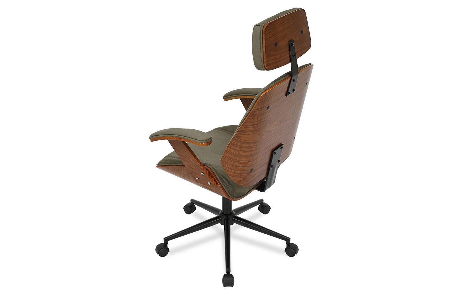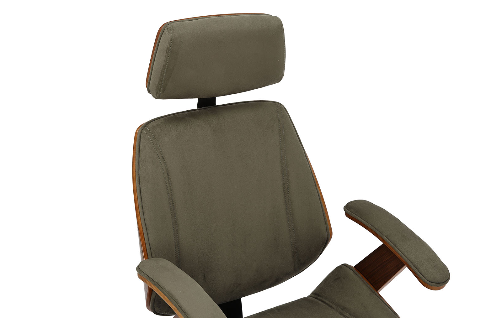 Обивка из эконубука оливково-зеленого оттенка, сиденье и спинка декорированы шпоном ореха.