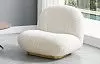 Название небольшого, но стильного кресла Cloud (Клауд) не зря переводится как «облако». Модель внешне напоминает пушистое облачко благодаря обивке из ткани тедди с эффектом букле благородного цвета слонового кости. Каркас выполнен из стали, стилизованный под золото.