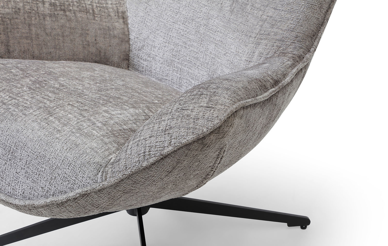 Поворотный механизм на 360 градусов позволяет легко менять положение, не вставая с кресла, и делает его функциональным элементом повседневного интерьера. Обтекаемая форма сиденья и плавные линии поддерживают расслабленную атмосферу.
