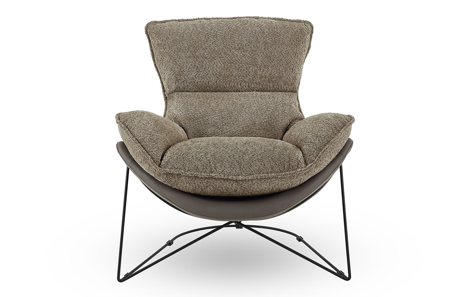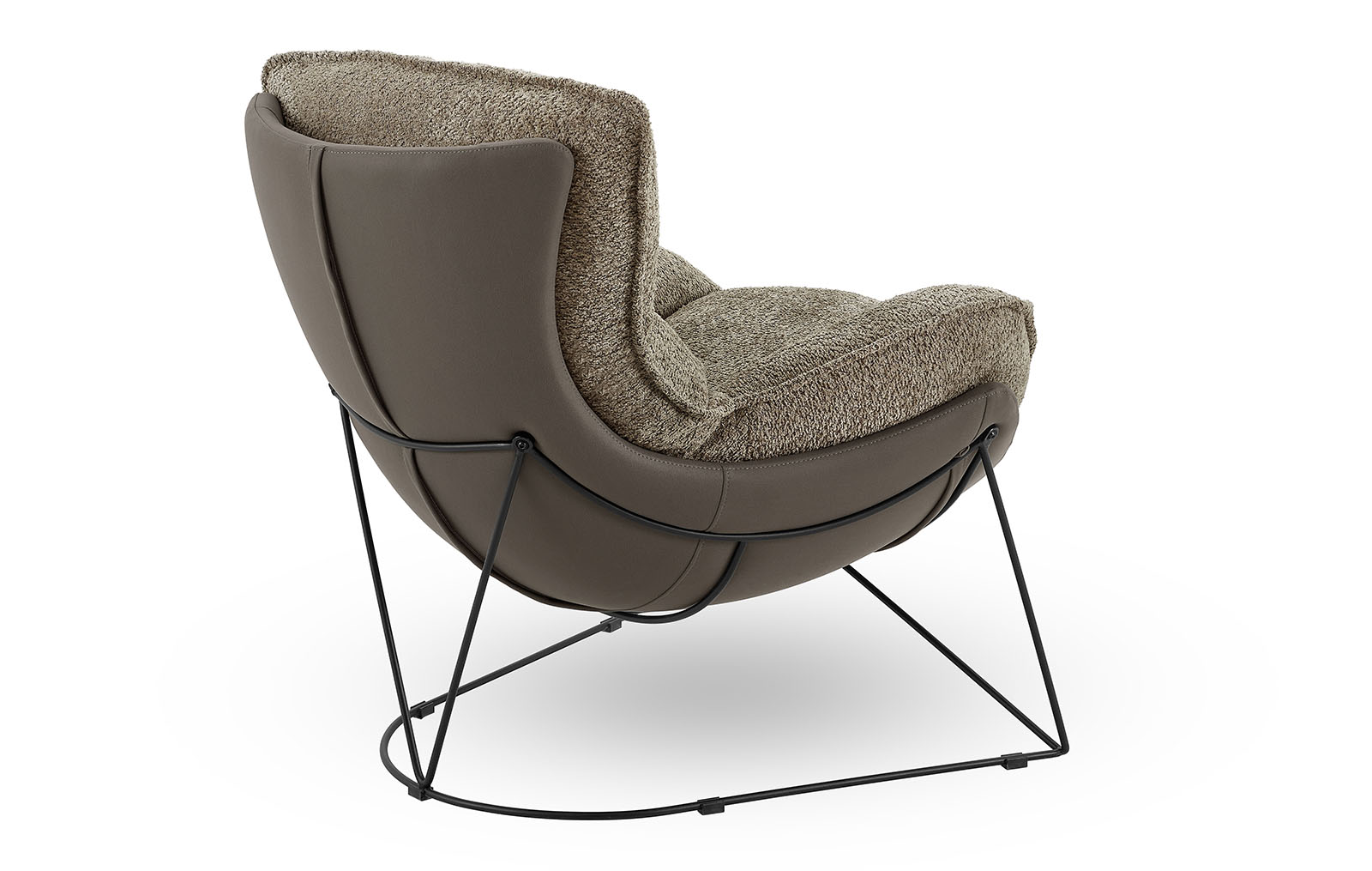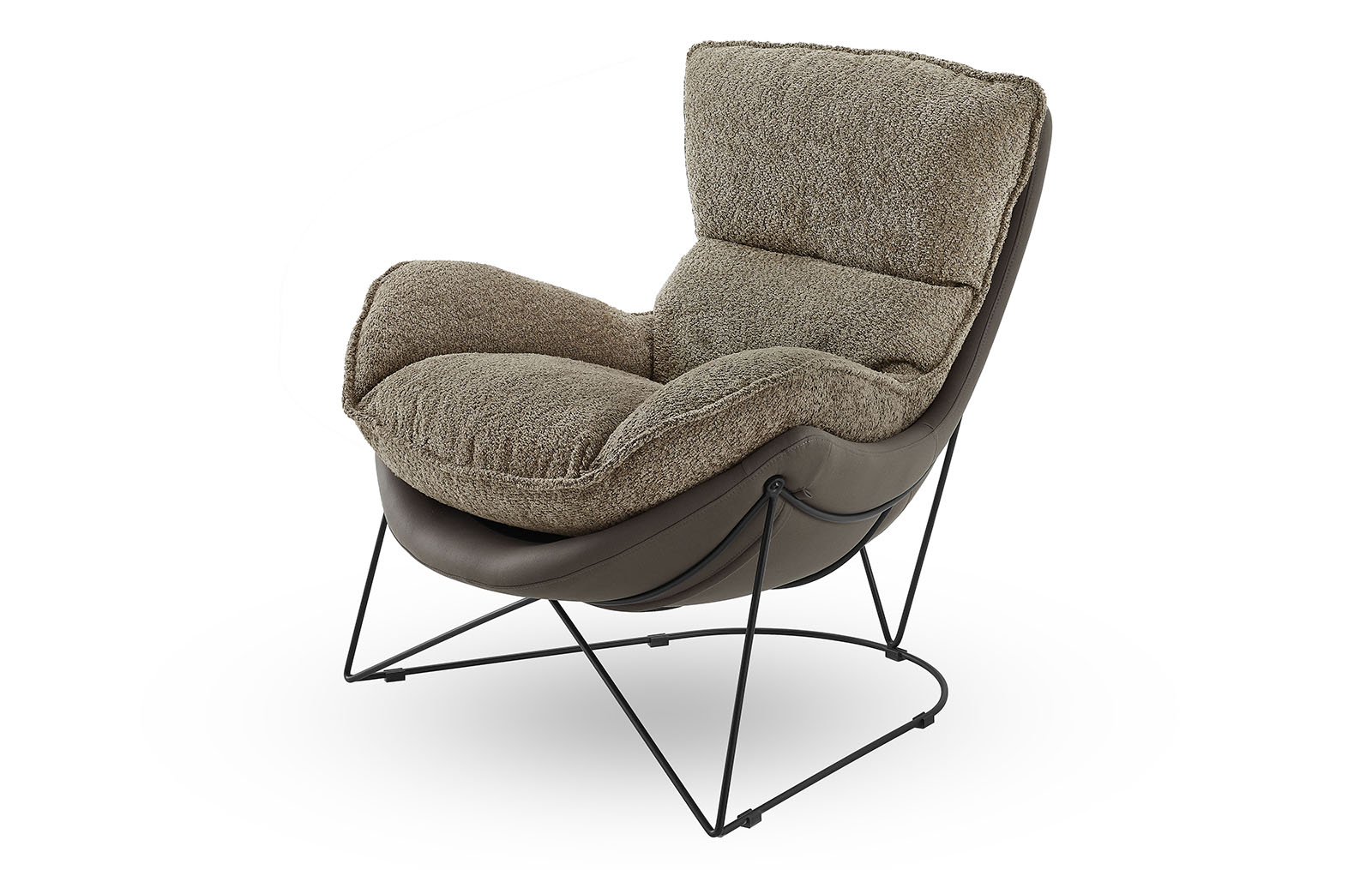 Оригинальная ножка кресла выполнена в виде металлического каркаса из прутьев, что придает ему современный и легкий вид, визуально освобождая пространство.
