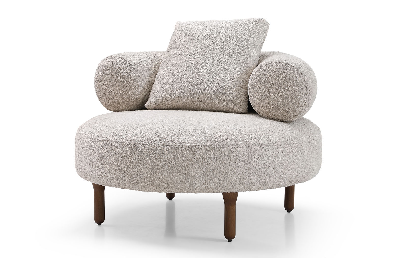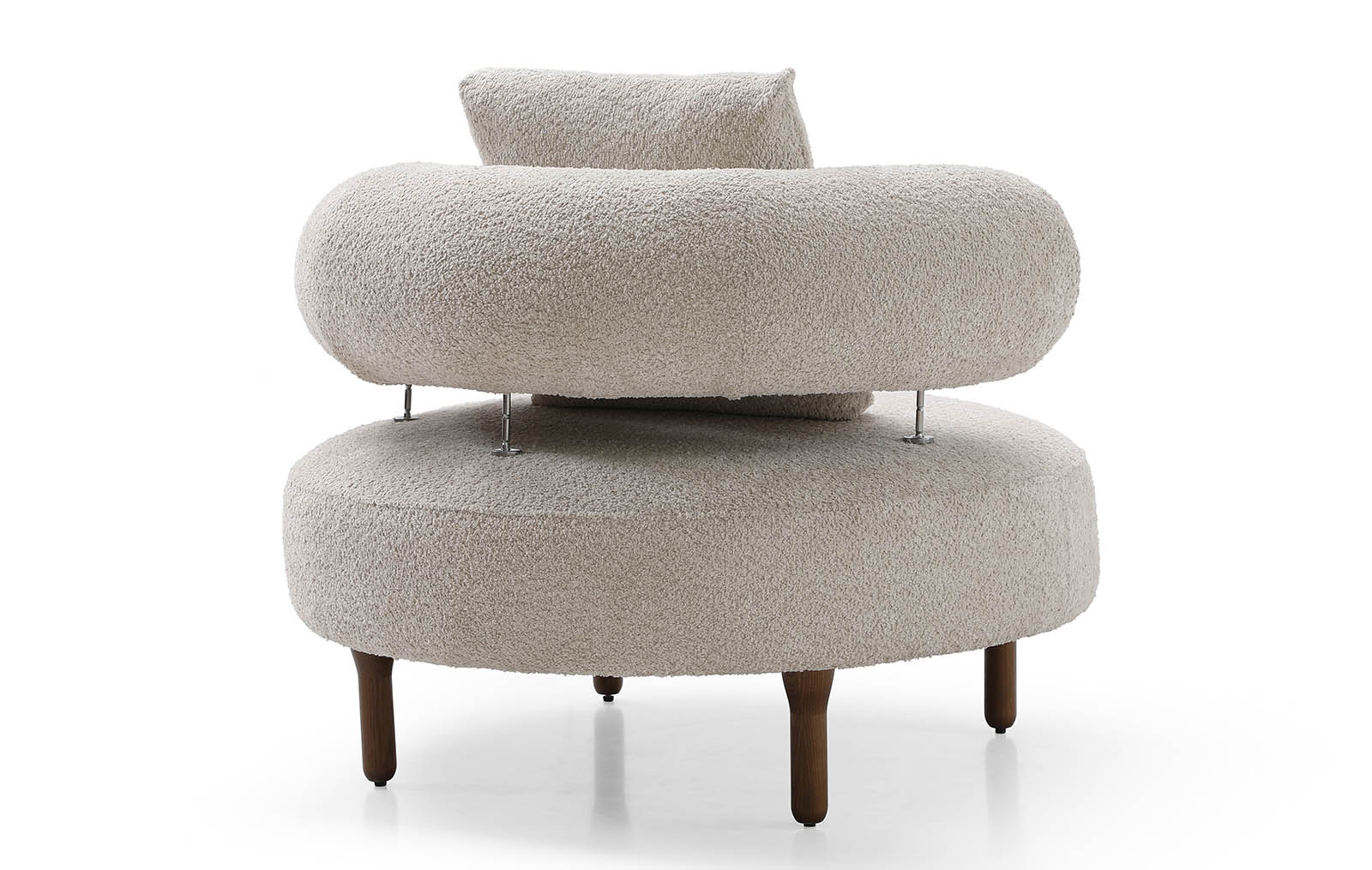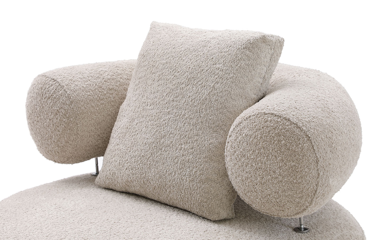 Округлая форма, объёмные подлокотники, подушка под спину и фактурная обивка «тедди» создают не только эффектный вид, но и невероятный комфорт.