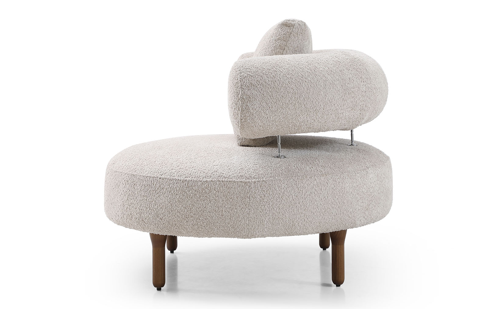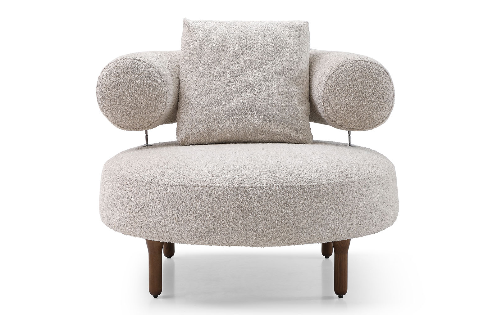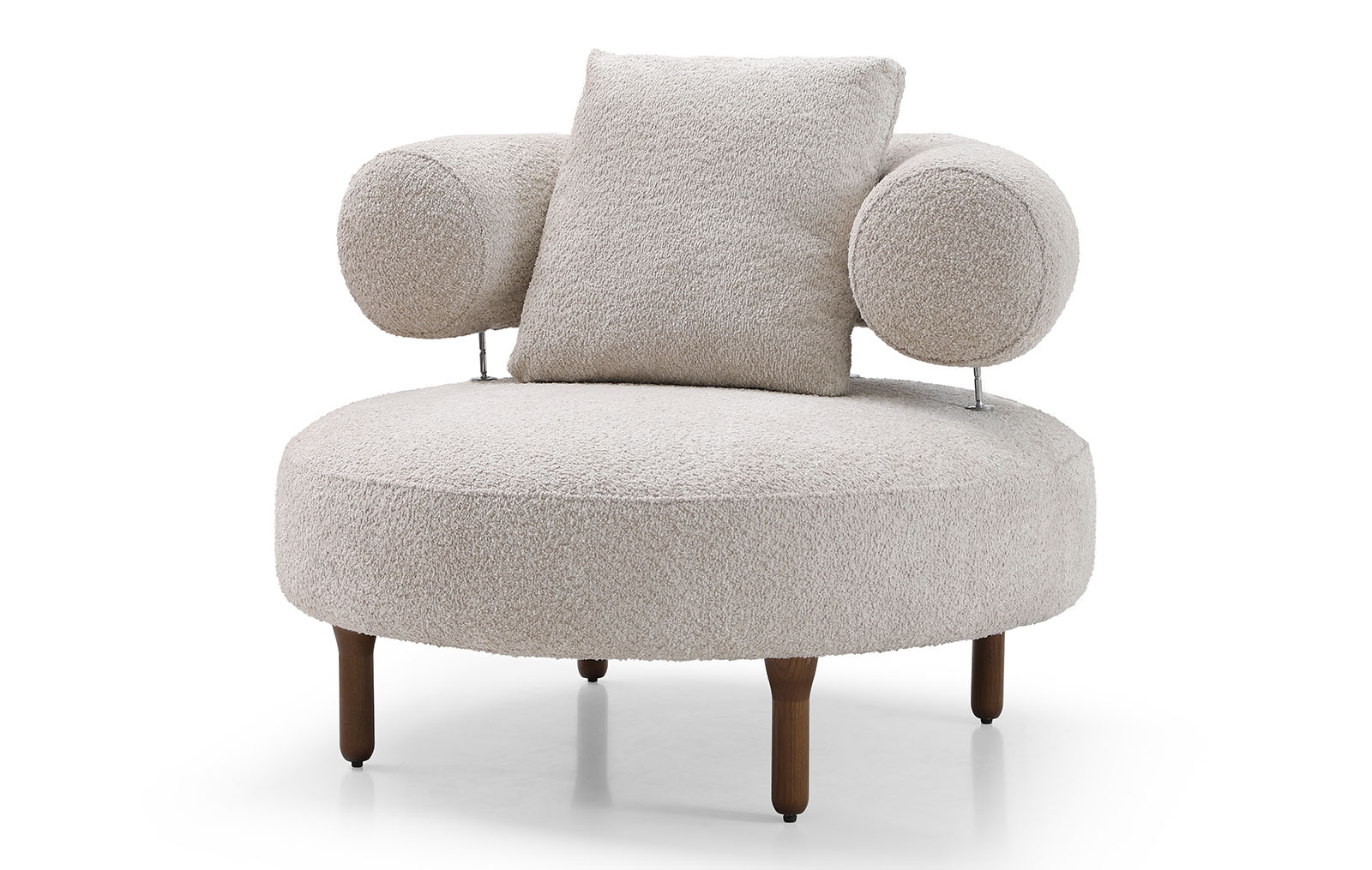 Округлая форма, объёмные подлокотники, подушка под спину и фактурная обивка «тедди» создают не только эффектный вид, но и невероятный комфорт.
