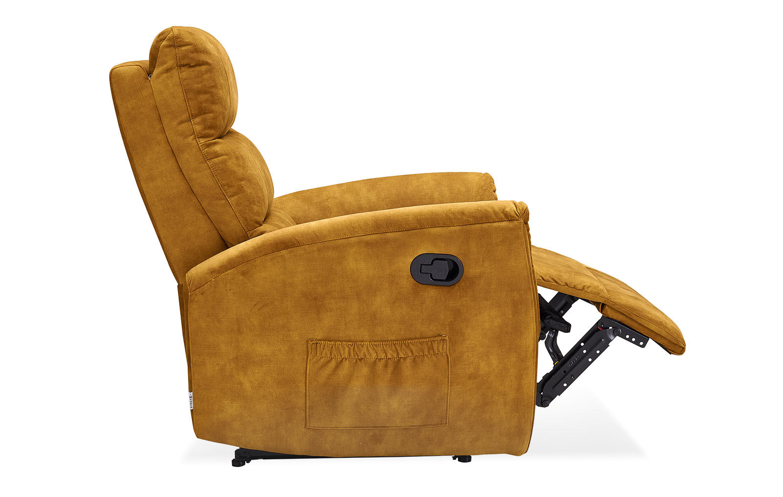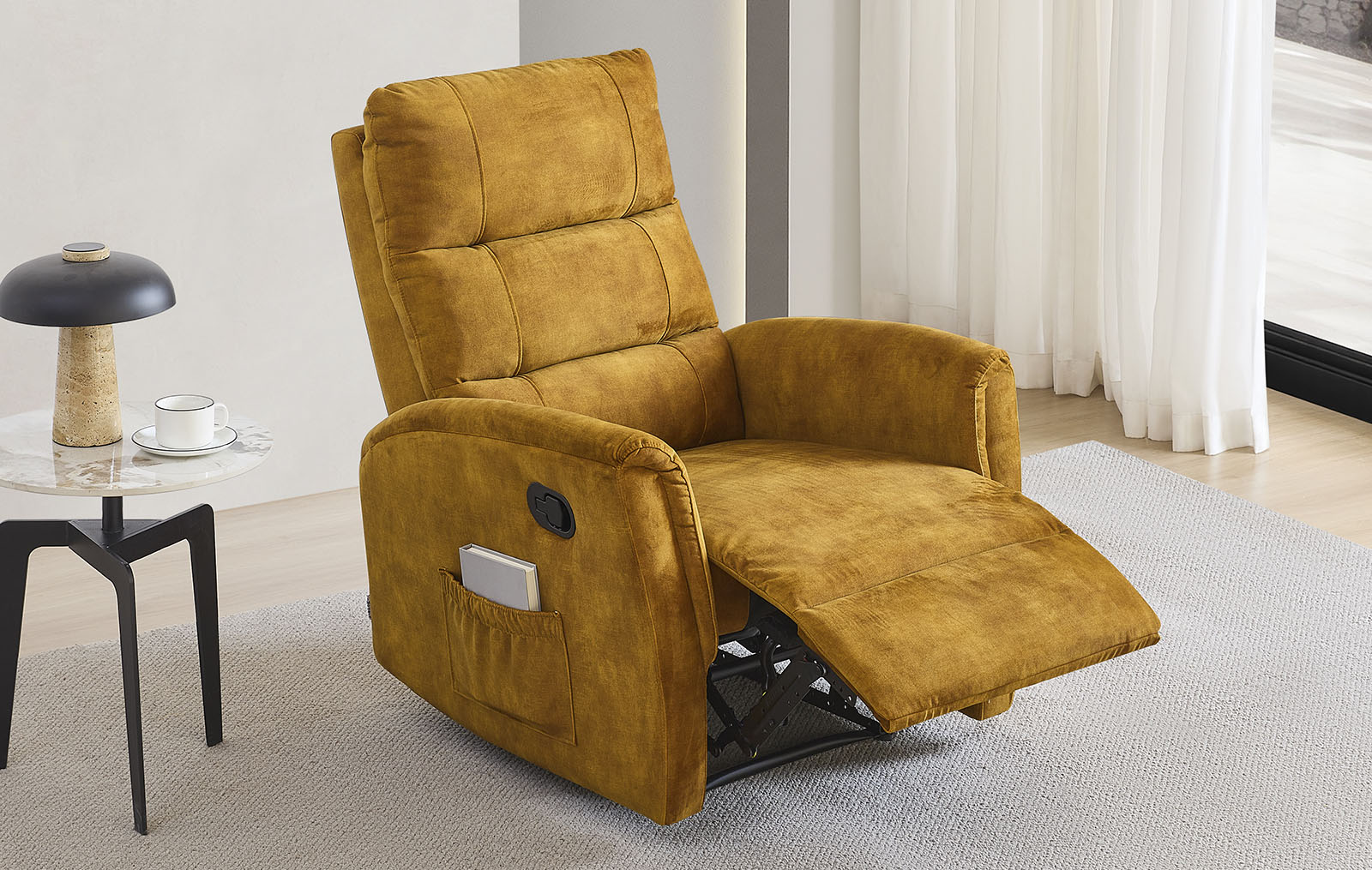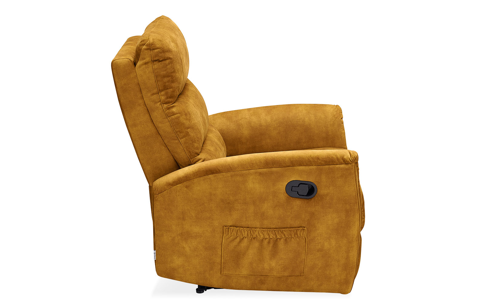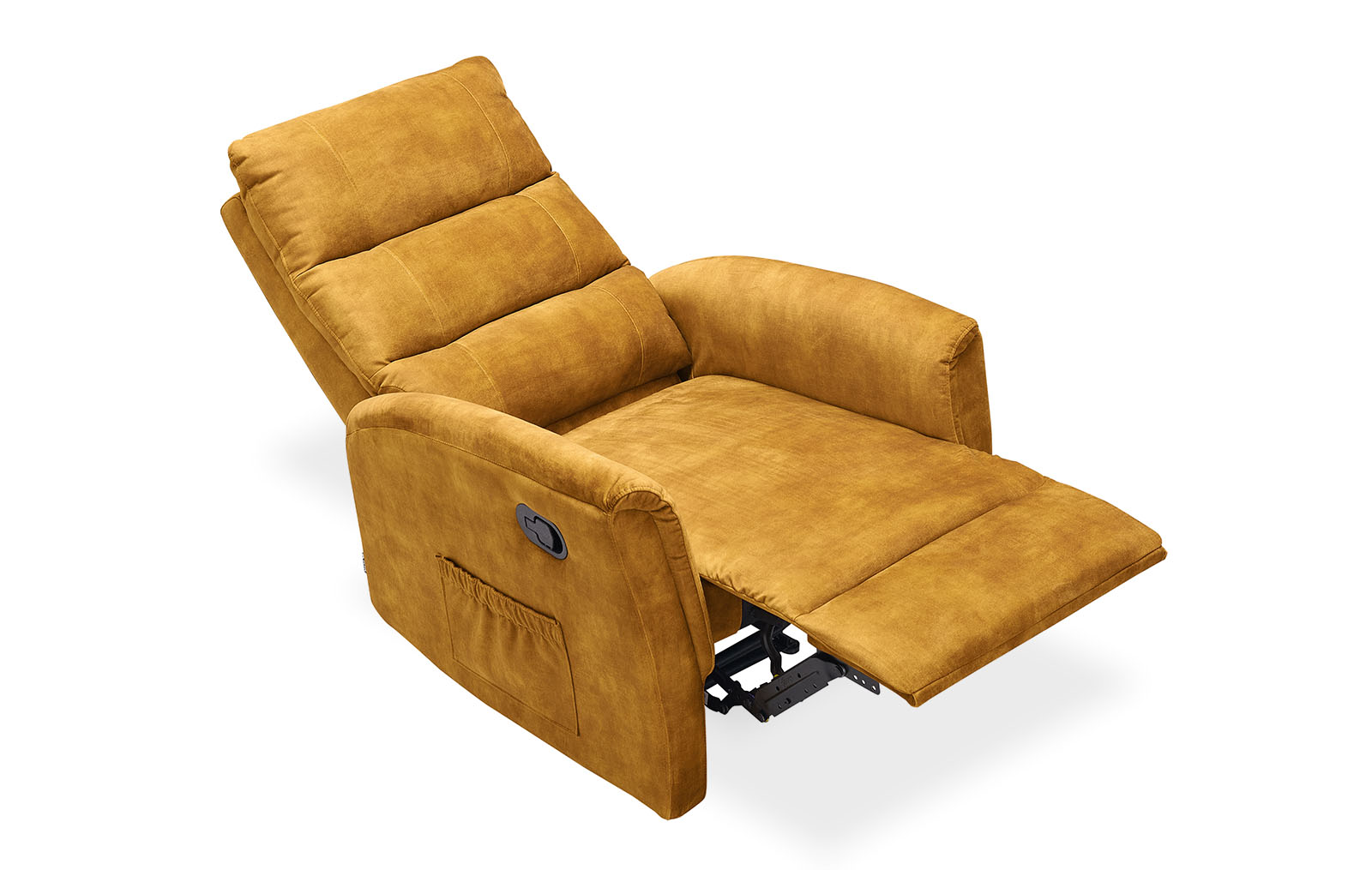 Кресло оснащено механическим реклайнером, который управляется с помощью кнопки на подлокотнике. Механизм реклайнер позволяет откидывать спинку назад и выдвигать подножку, обеспечивая максимальное расслабление.