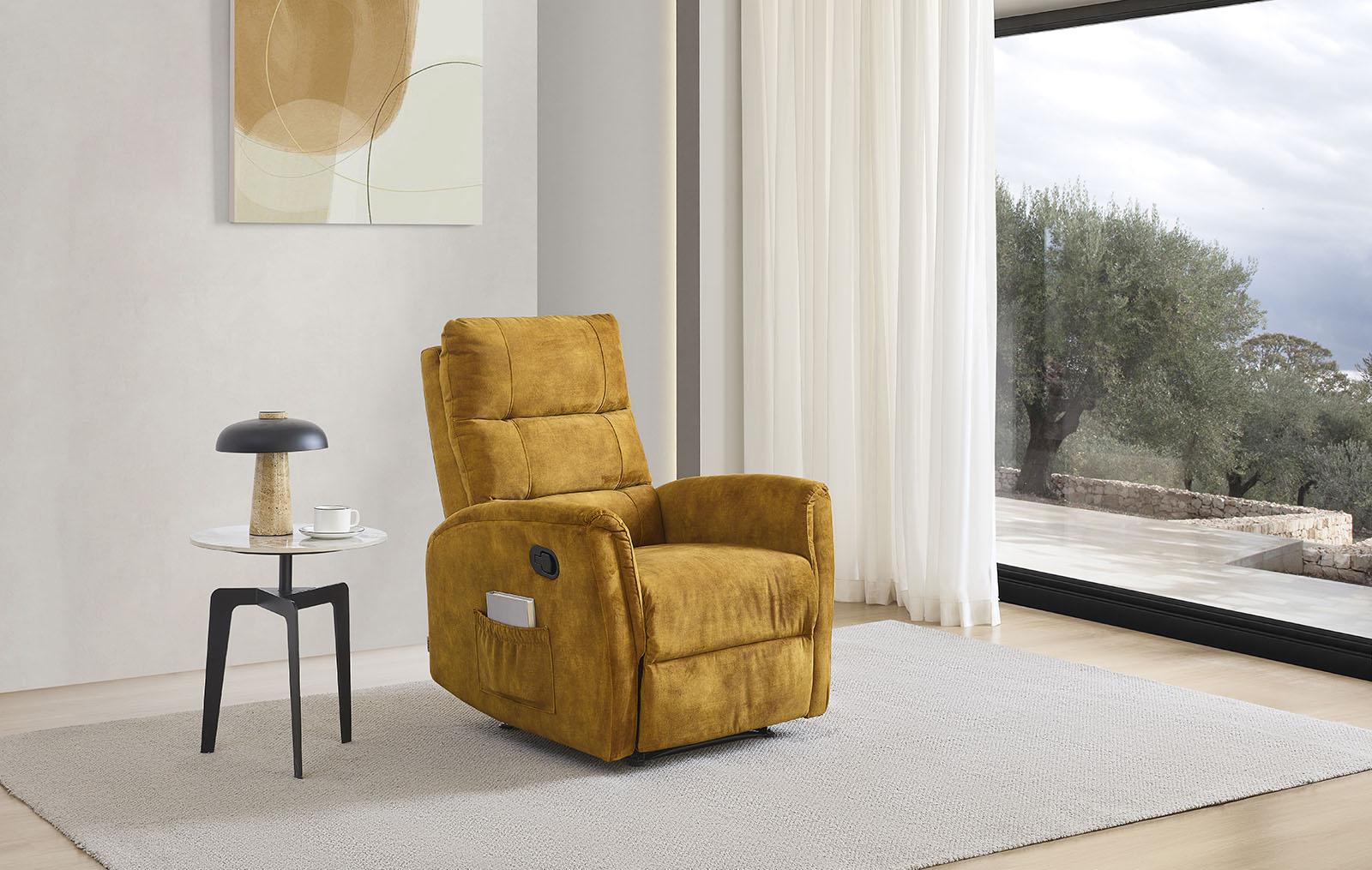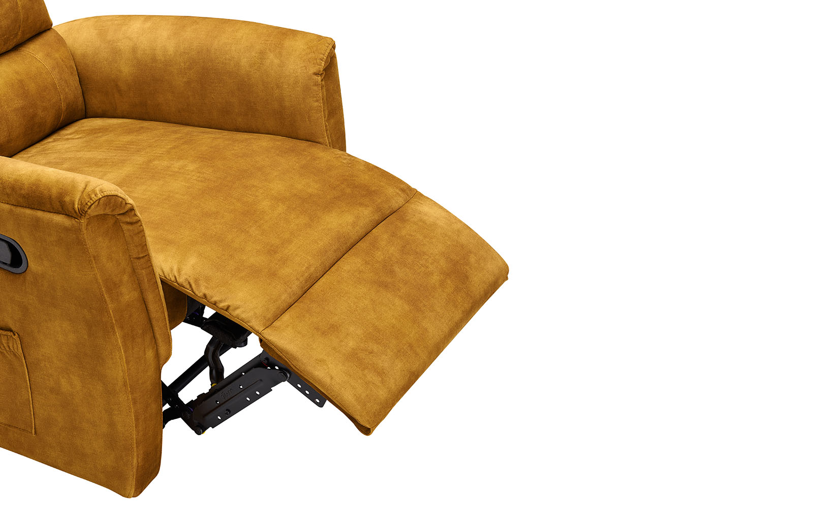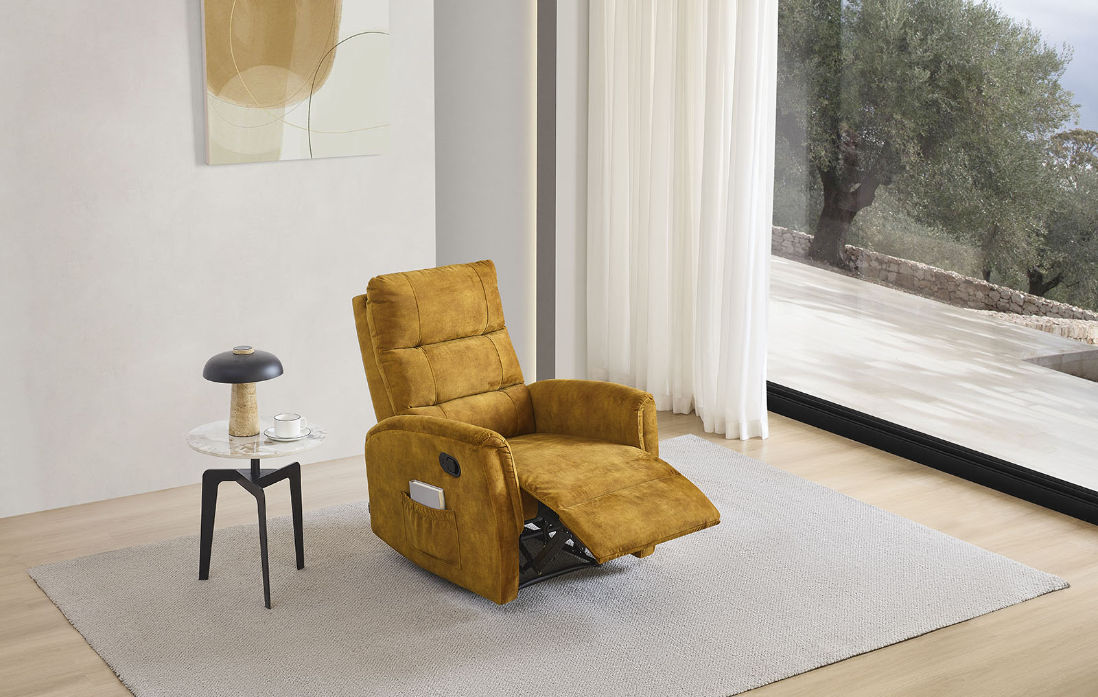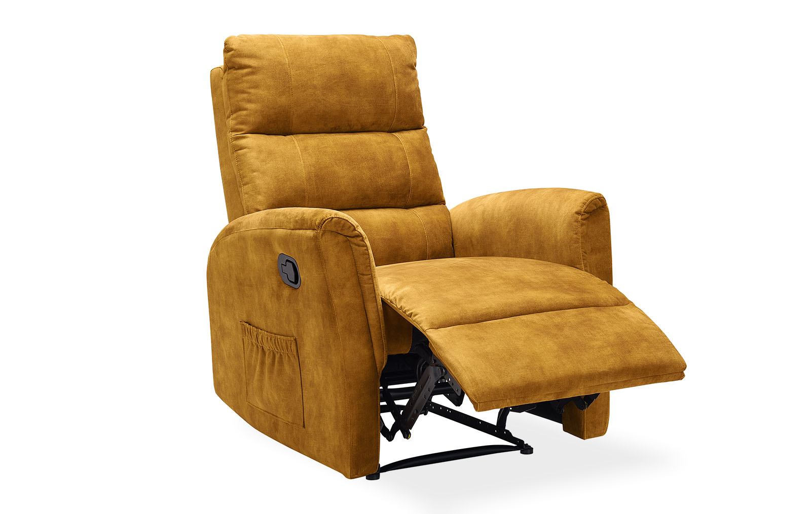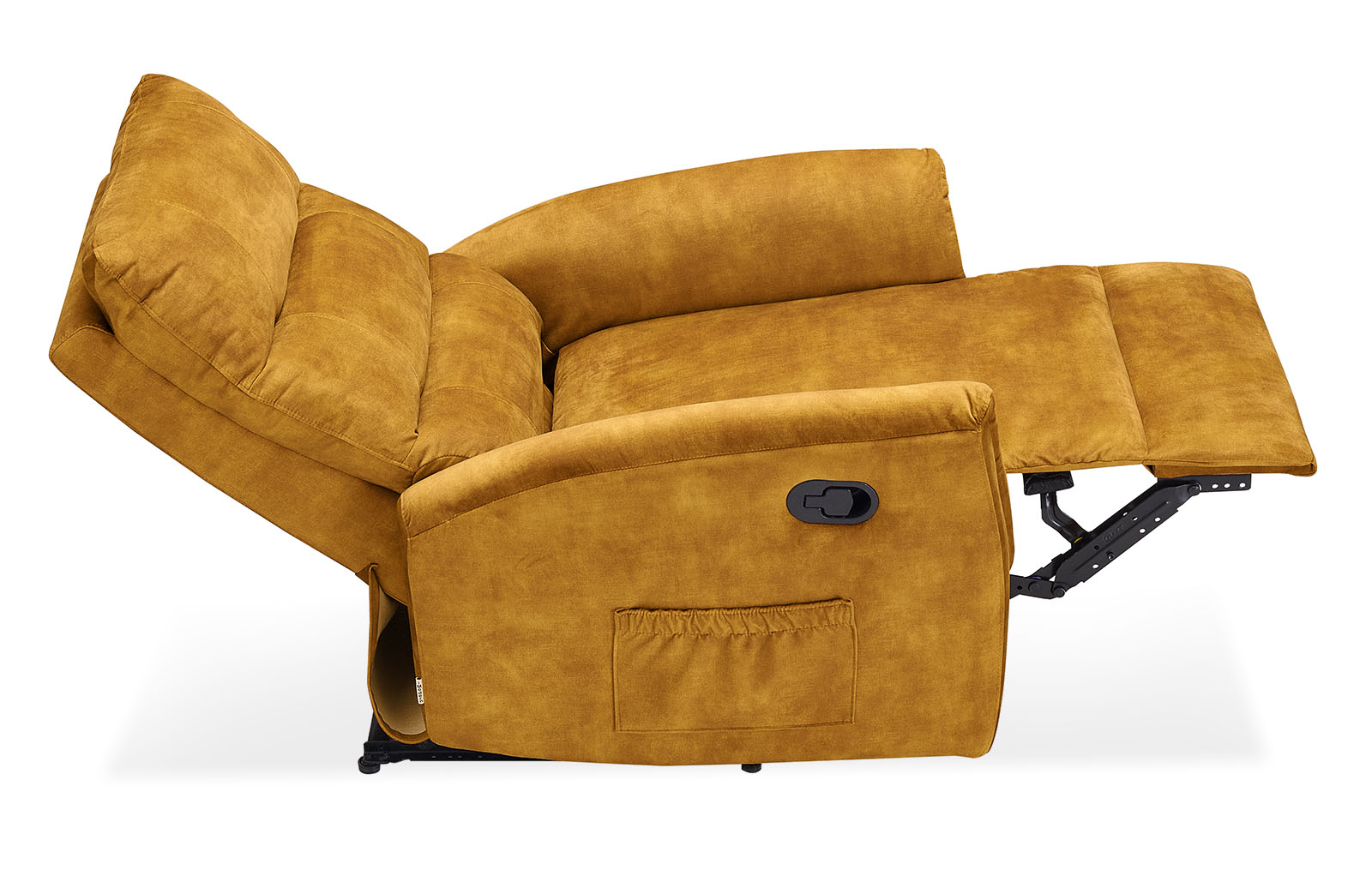 Кресло оснащено механическим реклайнером, который управляется с помощью кнопки на подлокотнике. Механизм реклайнер позволяет откидывать спинку назад и выдвигать подножку, обеспечивая максимальное расслабление.