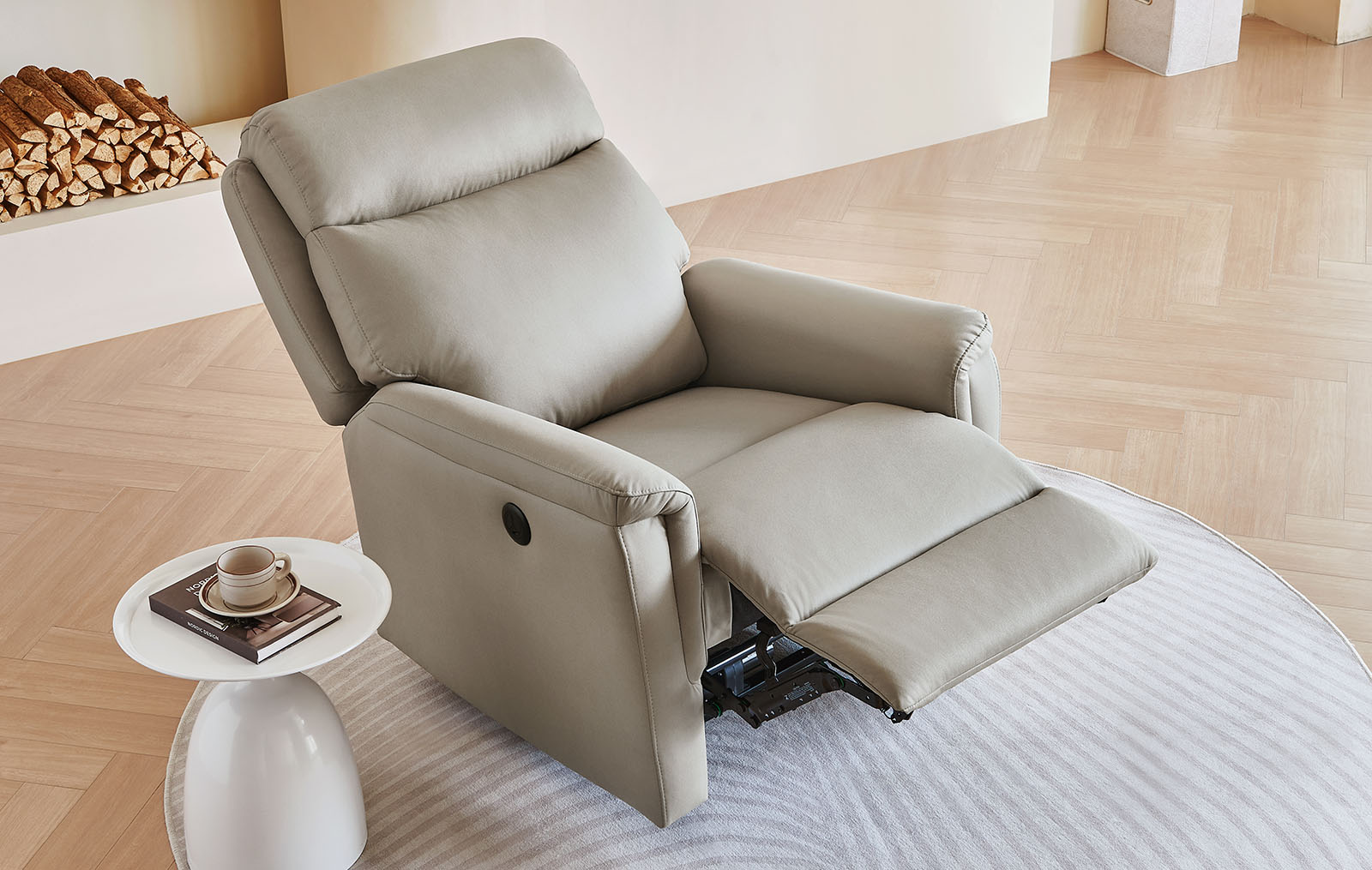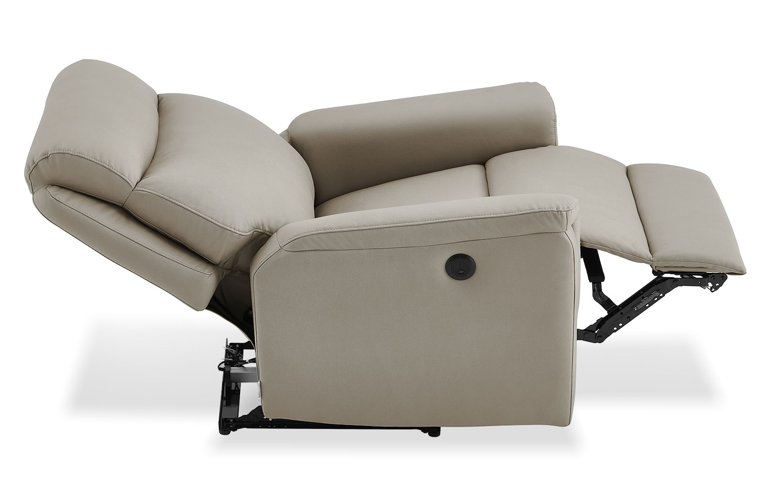 Механизм реклайнер позволяет приподнять нижнюю часть кресла в качестве подставки для ног и откинуть спинку назад для большего комфорта. Управление с помощью кнопок на подлокотнике.