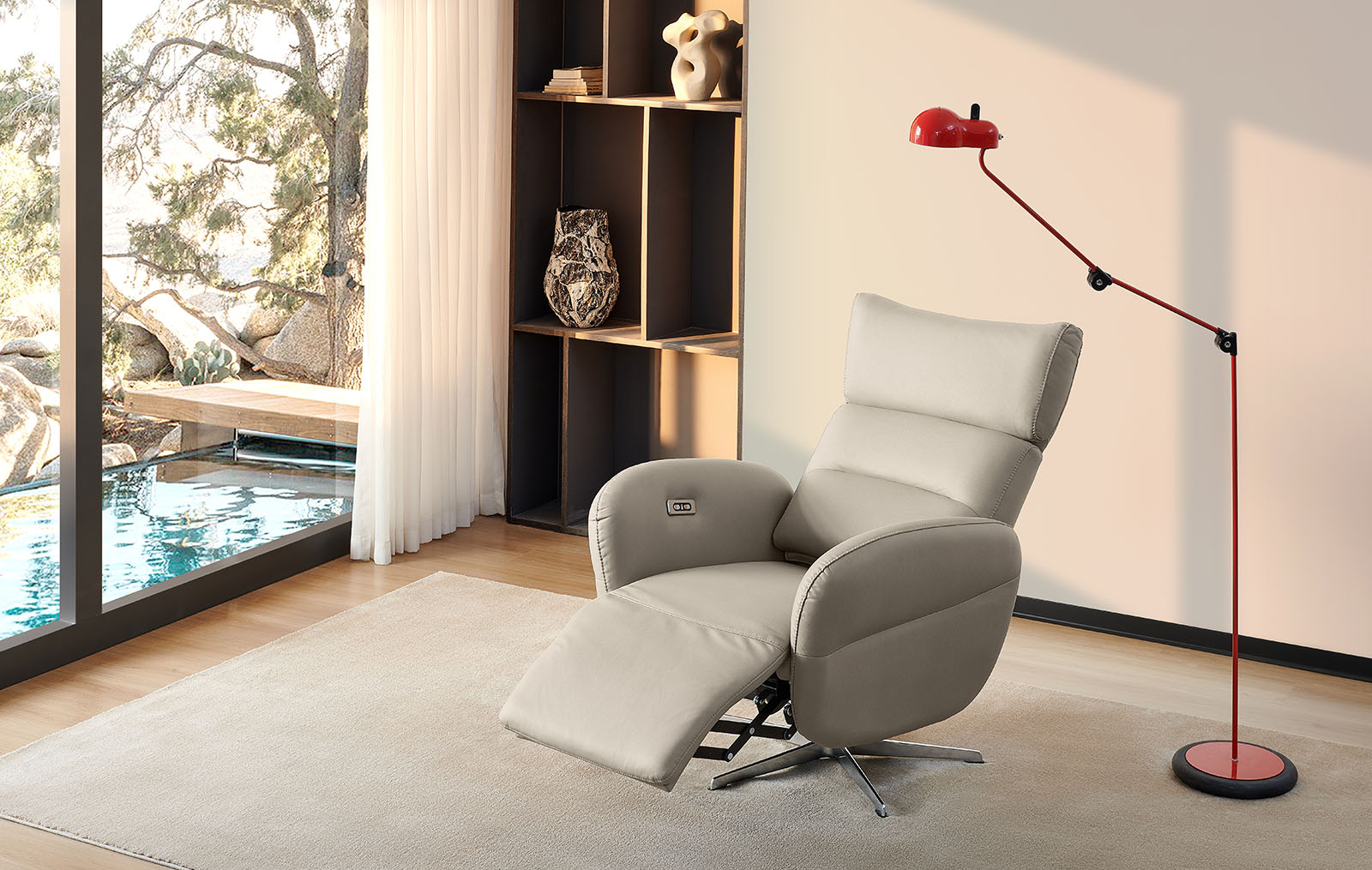Электропривод позволяет с легкостью регулировать угол наклона спинки и подножки, предоставляя возможность настроить идеальное положение для релаксации и обеспечить себе максимальное удобство для отдыха.